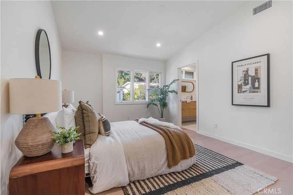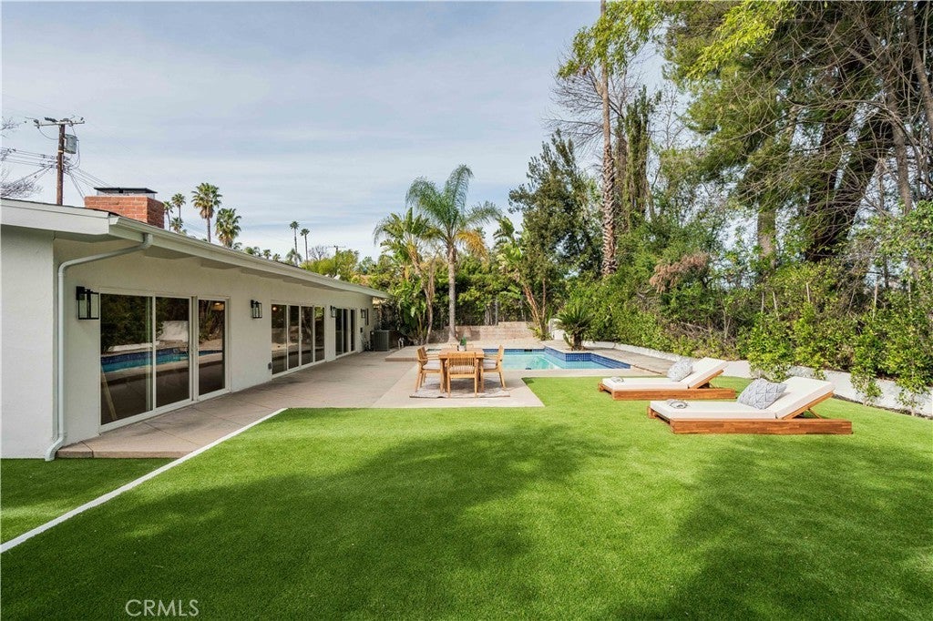 An iconic Charles Dubois mid-century residence, thoughtfully reimagined to blend timeless architectural integrity with modern volume, warmth, and livability. This thoroughly well thought out design, with all bedrooms ensuite plus an additional powder room, honors the original spirit of Dubois’ design while elevating it for contemporary living. The layout has been redesigned to create a seamless open-concept floor plan, connecting the kitchen, living room, and dining areas into one expansive, light-filled space ideal for both everyday living and entertaining. The walls of glass off the entertaining spaces look out onto the spacious outdoor areas, which include a beautiful swimming pool and sunning terraces set against the backdrop of the mature landscape. Clean lines, balanced proportions, and an effortless indoor-outdoor flow reflect the hallmark elements that made Charles Dubois one of the most celebrated mid-century architects in California. The kitchen serves as the heart of the home, featuring custom cabinetry, premium countertops, combine sculptural design with everyday function. Each bedroom is a private en-suite retreat, offering flexibility and comfort for family, guests, or work-from-home living, while the addition of a well-placed powder room adds convenience for entertaining. A rare opportunity to own a true Charles Dubois architectural home—updated for modern life while remaining deeply rooted in mid-century design—perfectly positioned in one of Woodland Hills’ most desirable neighborhoods.