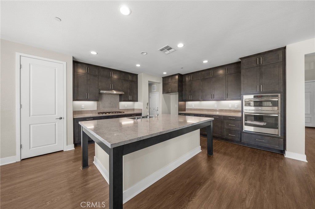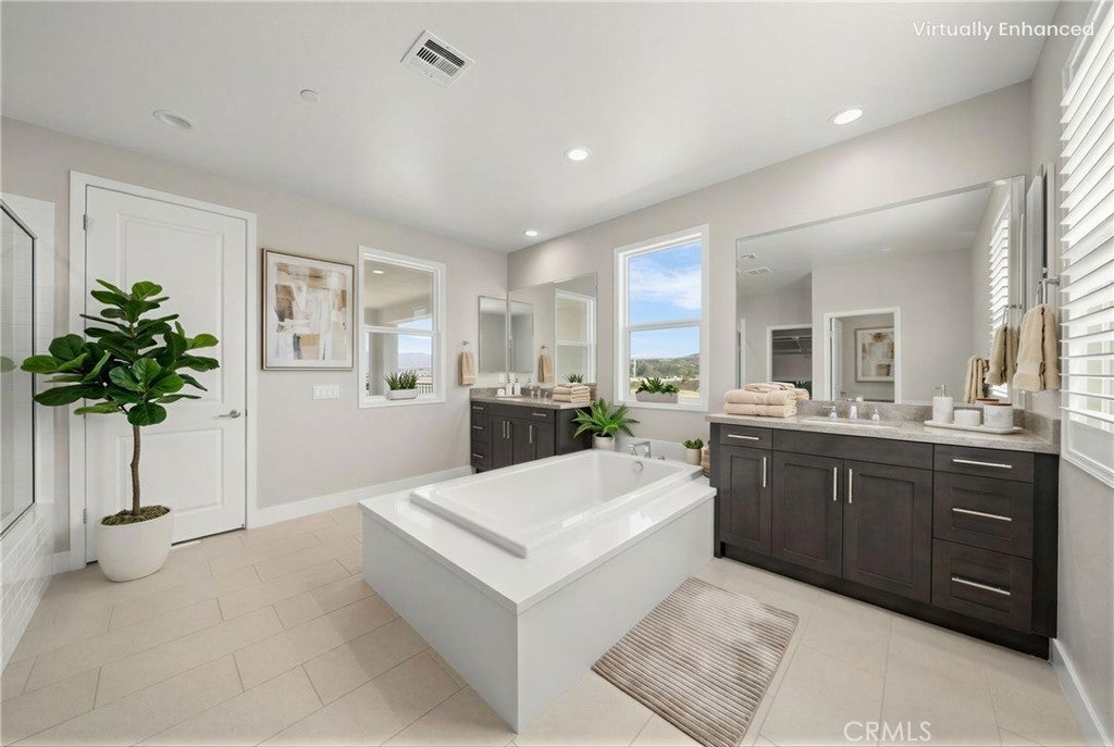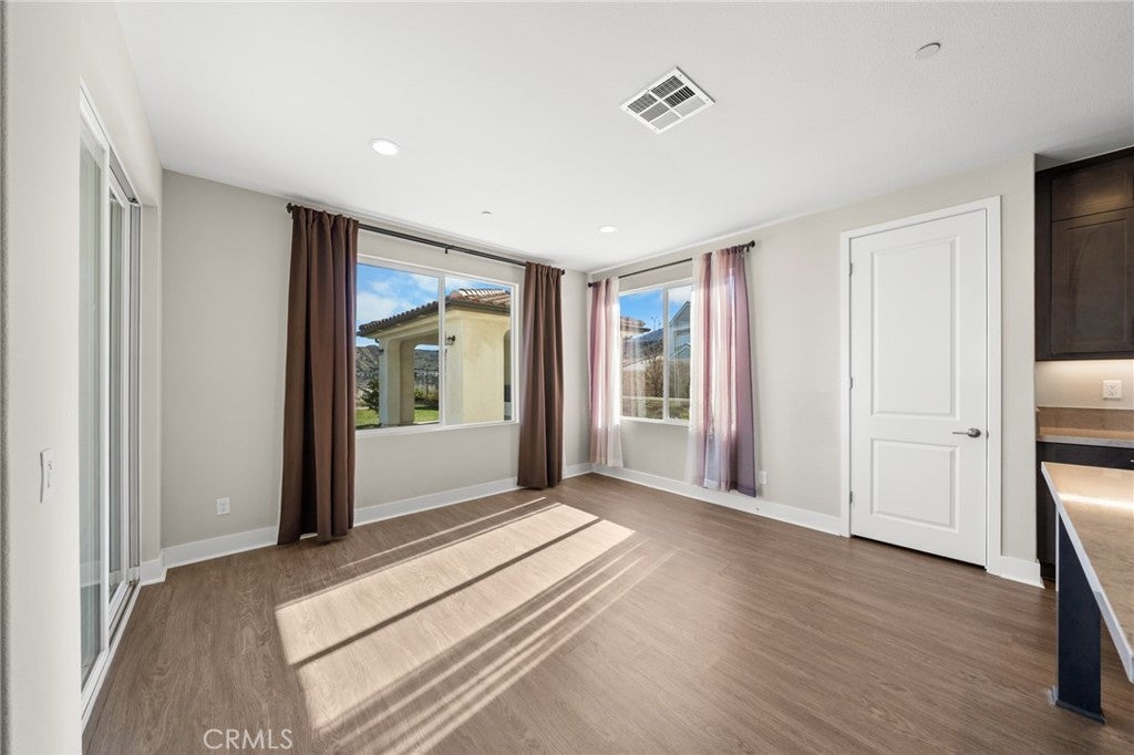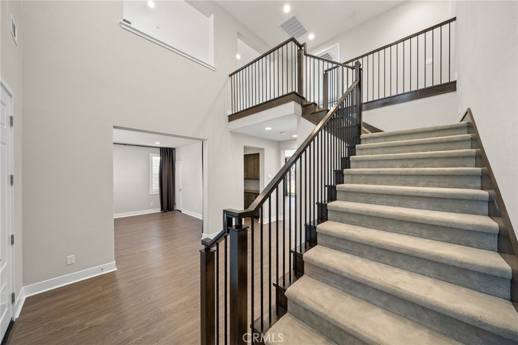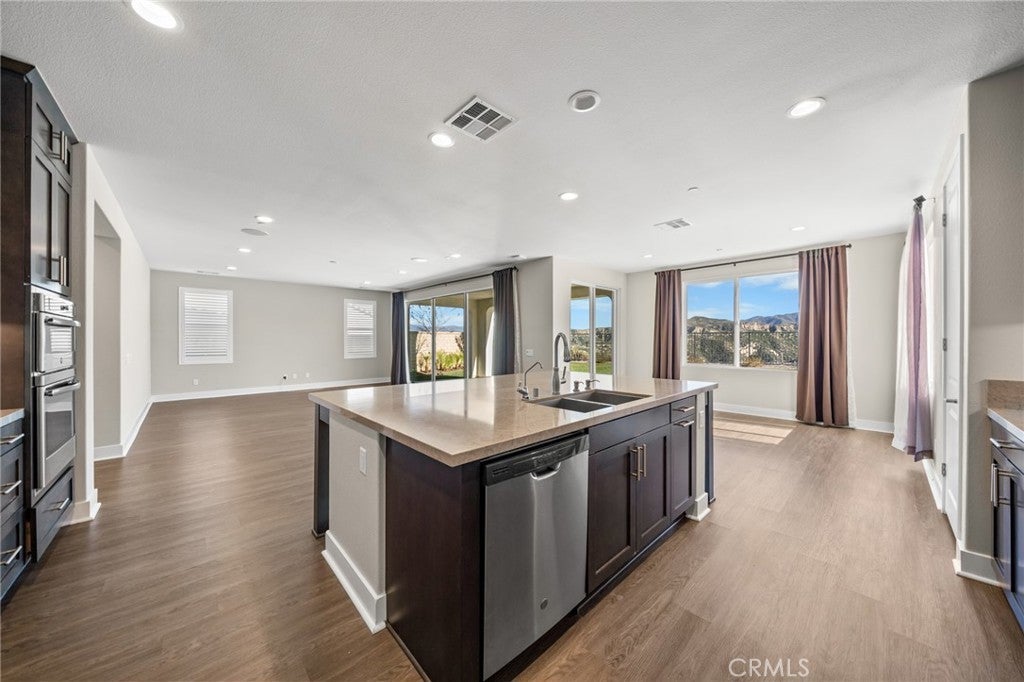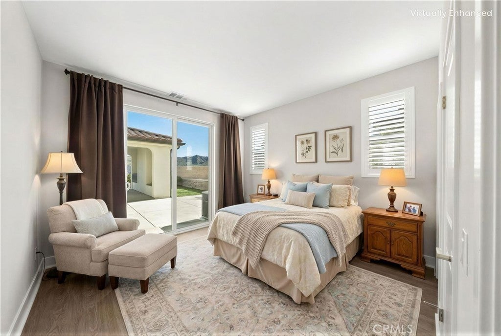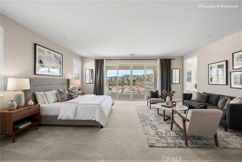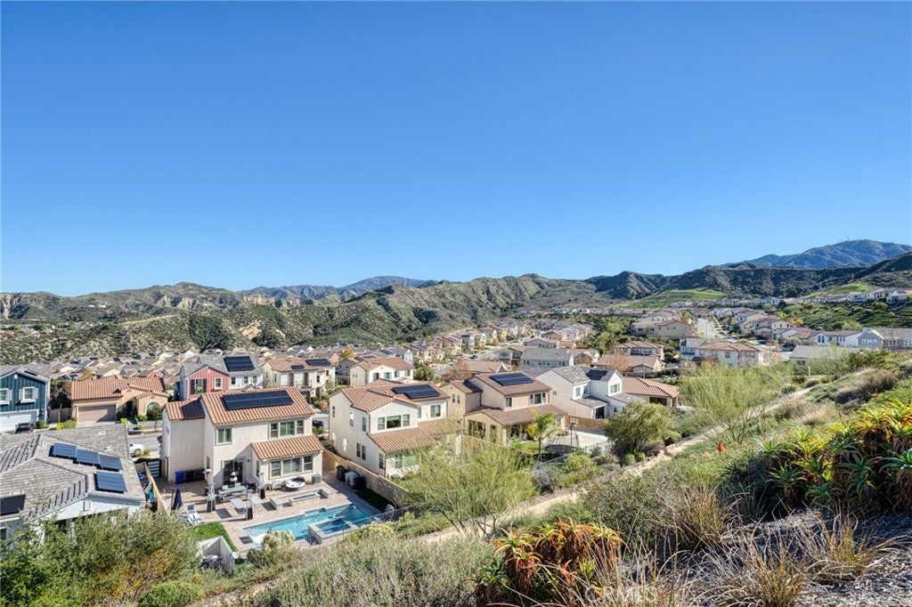 PRICE REDUCED for a Quick Sale! Breathtaking panoramic views and upgrades surpassing model home! Situated on a highly desirable premium lot. Welcome to 25110 Cherry Ridge Dr, a two-story single-family home nestled in the highly desirable Aliento gated community in Santa Clarita. Built in 2019, this modern residence offers the perfect blend of luxury, comfort, & contemporary design. One of this home’s standout features is ITS PEACEFUL CITY & MOUNTAIN VIEWS, providing a serene & picturesque backdrop from both inside the home & outdoor living spaces. Whether you're enjoying your morning coffee or winding down at sunset, the views elevate the overall living experience. Boasting 4 bedrooms & 3.5 baths (one bedroom with en suite bathroom is downstairs), huge loft & office, this 3,442 sq. ft. home sits on an expansive 9,662 sq ft lot. The floor plan is open and airy with high quality finishes throughout. Upstairs, a luxurious primary suite & covered balcony offers plenty of privacy and comfort. Enjoy stunning city and mountain views from the living room, dining room & bedrooms. Modern features are a tankless water heater, fully paid solar panels, and wifi-enabled thermostats, garage door opener, front door lock, and light switches (living & dining). Interior upgrades are full-height stacked kitchen cabinets w/ stained solid wood doors and soft-close cabinet hinges; 15-foot stacked sliding doors in living room; 12-foot French doors in primary bedroom; sliding door in dining room; engineered quartz countertops, plantation shutters by Norman with rod-less design; ceiling speakers in living room & speaker pre-wire in loft (rear surround only); stained solid wood handrail & iron balusters; vinyl plank flooring downstairs; Carpeting upstairs & in staircase; upgraded tile flooring in bathrooms & laundry; and recessed lighting in living room, kitchen, den, and loft. Exterior upgrades are: covered sunroom outside living room; covered balcony outside primary bedroom; covered pavilion in the backyard for year-round outdoor entertaining; landscaped yard, patio, and sprinkler/dripper system. Convenient access to shopping, dining, parks, and major commuter routes. Community pool, recreation center, and gym. Close to top rated local schools, Costco, Stater Brothers, Lowe’s, Trader Joe’s, Toppers, Edwards Cinema & excellent restaurant and entertainment options. Close to 14 freeway. This property is an incredible opportunity to own a beautifully maintained, move-in ready home.