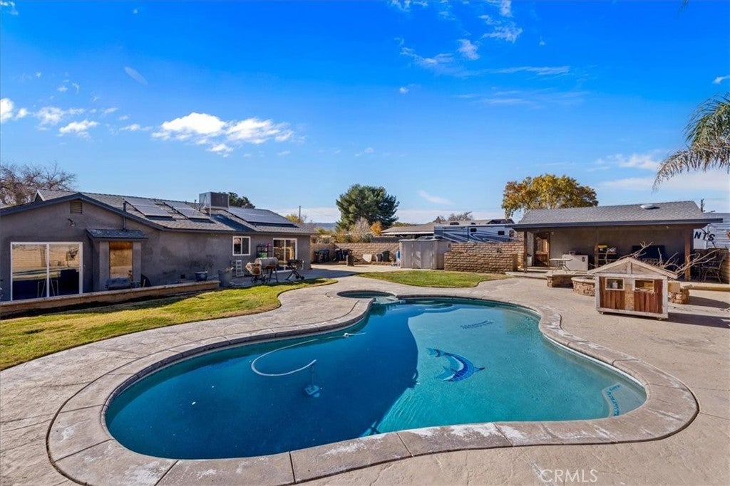 Rare lifestyle property in desirable West Lancaster/Quartz Hill area on ~1.25 acres of flat, usable land. This single-story 4 bed, 2 bath home offers comfortable living space and an incredible backyard featuring a custom in-ground pool and spa with extensive stamped concrete hardscape, grassy areas, and mature palms—perfect for entertaining. Property includes an oversized solar system for energy efficiency, detached garage with covered porch ideal for workshop or storage, and corrals for livestock. Plenty of room for RVs, toys, additional structures, or potential ADU (buyer to verify). Quiet rural setting just minutes from shopping, schools, and freeway access. A rare combination of land, pool, solar, and ranch-style amenities all in one property.