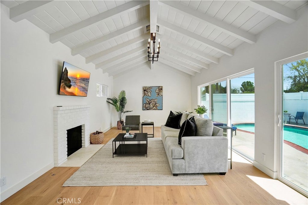 Remodeled single-story home located on a residential street in Reseda, adjacent to Tarzana, offering flexibility, comfort, and income potential. The property features a beautifully updated 3-bedroom, 2-bath main residence plus a separate permitted detached ADU, with a total living space of approximately 2,211 square feet, including the ADU. The main home features a spacious, functional open layout ideal for everyday living and entertaining. The updated kitchen features quartz countertops, stainless steel appliances, ample cabinetry, and modern finishes, and opens seamlessly to the dining and living areas. A large family room with soaring ceilings, a fireplace, and expansive wall-to-wall sliding glass doors enhances the home’s indoor/outdoor flow and provides abundant natural light. The primary suite is a private retreat with its own en-suite bathroom, while two additional bedrooms share a remodeled full bathroom. The home has been thoughtfully updated throughout and is move-in ready. The backyard includes a pool and outdoor space ideal for entertaining or relaxing. Additional amenities include central HVAC, in-unit washer and dryer, and ample parking for residents and guests. The permitted detached ADU with it's own address (6440 Lindley Avenue) and completely separate from the main house with access through alley adds significant value and versatility, offering the potential for rental income, a guest house, home office, or extended family use. The ADU is currently occupied by tenants through June, providing immediate income. Conveniently located near shopping, dining, parks, and major access routes, this property offers a strong combination of flexibility and investment upside.