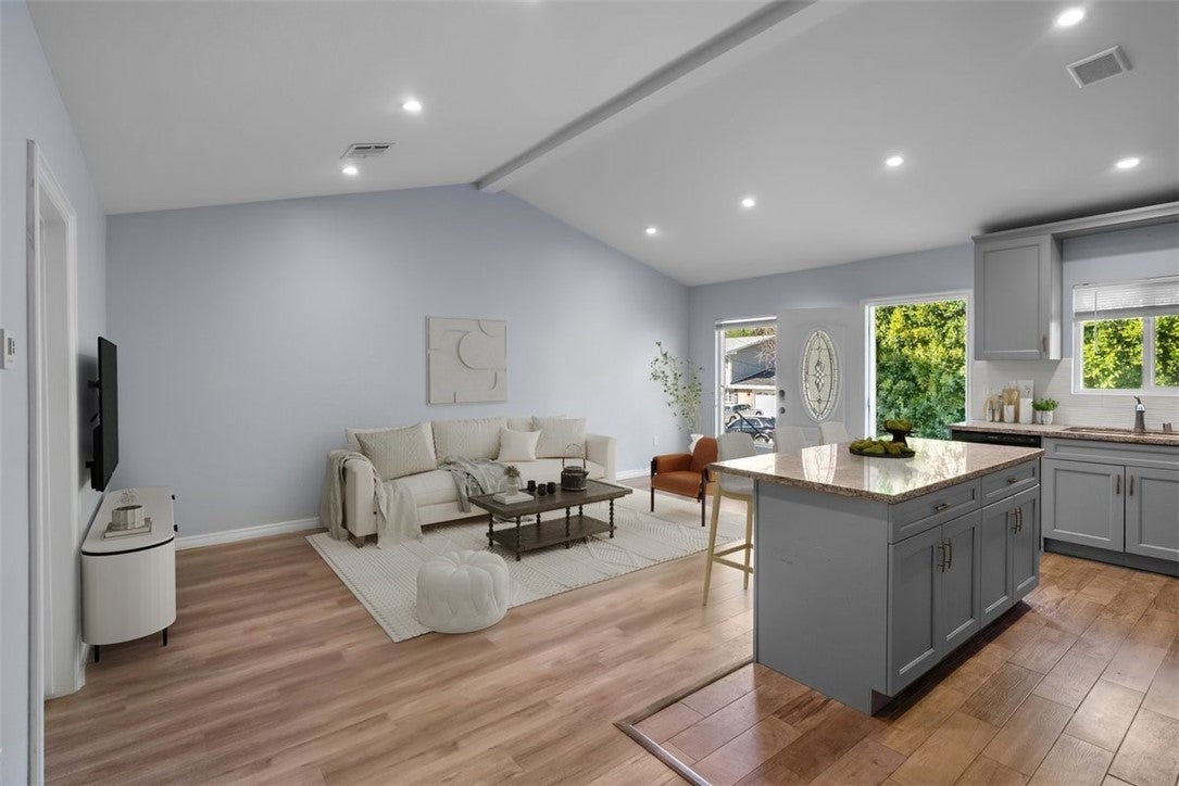 Discover a beautifully designed 2 bed, 2 bath ADU nestled in a highly desirable pocket of Woodland Hills. Pull up in the driveway to private 2-car parking next to the front door. Enter a bright and airy home with high ceilings and open-concept living. The main living room is grand and opens to the kitchen featuring granite countertops, stainless steel appliances and a large center island, ideal for both everyday dining and entertaining. Enjoy a luxurious primary suite offering a bonus space (office space, gym), a generous size closet and a stunning bathroom. Just down the hallway is a second bedroom, an additional bathroom, and in-unit laundry. Step outside and relax in your own private backyard. Additional highlights include forced heating and air conditioning, the smart-home Nest thermostat, and its convenient location near shopping and highly sought after schools.
