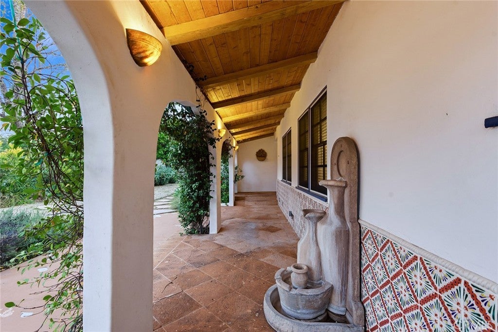 Privately gated and ideally situated south of Ventura Boulevard in Woodland Hills, this special compound presents a rare opportunity to own a single-story Spanish residence on an expansive 20,958 SQFT flat lot in one of the valley’s most sought after neighborhoods. Offering privacy, scale, and versatility, this charming home blends everyday comfort with meaningful long term potential - whether to enjoy as-is, fully renovate and expand, or build your dream estate. The interior unfolds with warmth and character, shaped by thoughtful details that give the home its unique personality. The main residence features 3 bedrooms and 2 bathrooms, hardwood flooring, smooth ceilings, recessed lighting, and is thoughtfully laid out for both entertaining and effortless daily living. A wood beamed ceiling in the family room and a chef’s kitchen with granite countertops plus large center island, anchors the heart of the home, complemented by updated bathrooms, newer interior paint, and a cozy fireplace. The spacious primary suite features a walk-in closet and a full en-suite bathroom with a spa tub and separate shower. Abundant natural light fills the home throughout the day, creating a comfortable and welcoming environment with a seamless connection of indoor/outdoor living space. Outdoors, the resort-like grounds truly set this property apart. Handcrafted details such as custom painted columns and mosaic wall accents quietly elevate the exterior spaces with charm and personality. The sprawling lot is highlighted by a sparkling pool, covered patio with BBQ bar, basketball court, mature gardens, planters, and multiple storage sheds - offering endless possibilities for leisure, entertaining, or future expansion. A long private electric gated driveway provides parking for multiple vehicles, adding both convenience and privacy. The estate also includes a detached two-car garage with a private upstairs recreation room and bathroom ideal for a potential ADU, home office, guest suite, or creative studio - an increasingly rare and valuable feature in today’s market. Quietly tucked away yet moments from premier dining, shopping, cafés, Topanga Village, Warner Center, local parks, and the new LA Rams practice facility, with easy access to freeways and the beach via canyon roads, this is a truly distinctive offering.