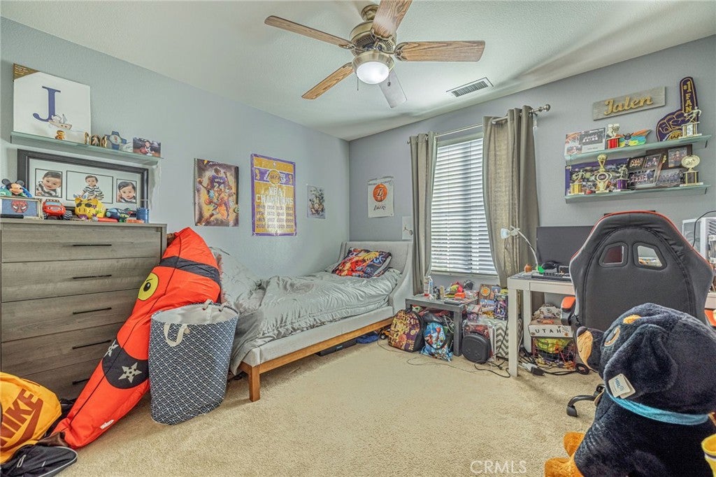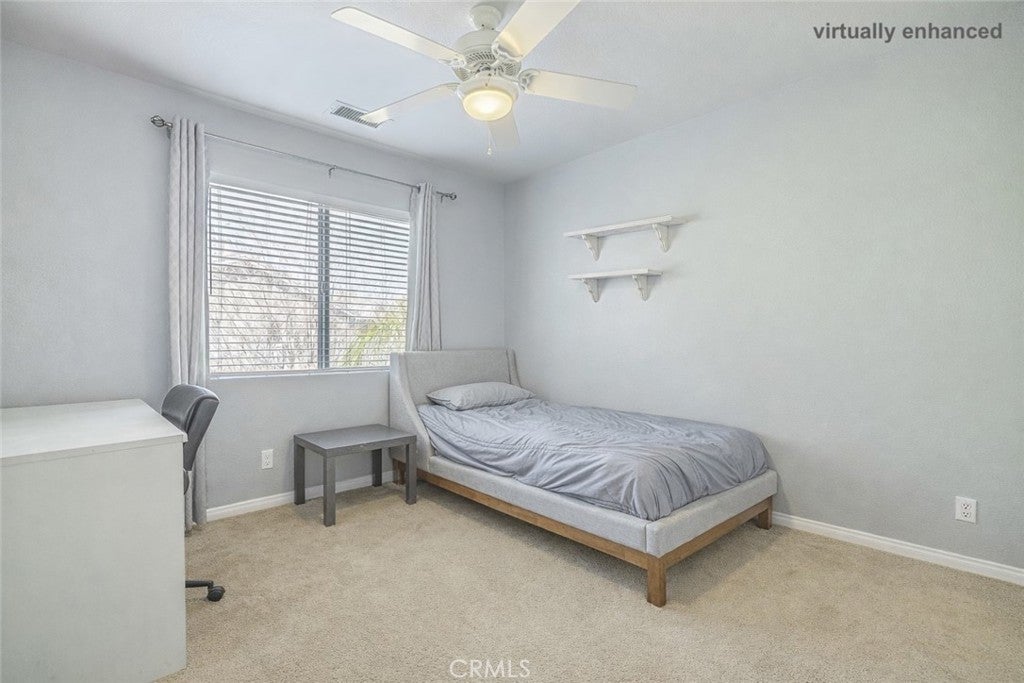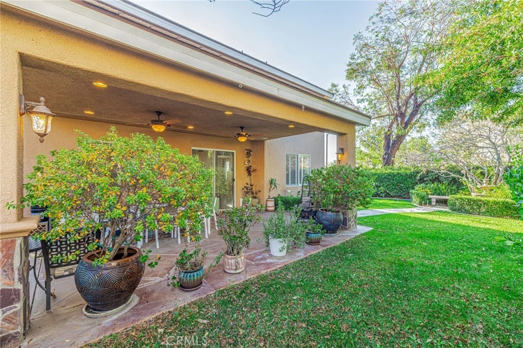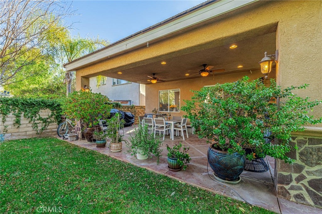 Back on market—another opportunity to secure a home that has already captured the hearts of buyers. Homes like this don’t come around often—NO MELLO ROOS & VERY LOW HOA! An exceptional value and opportunity to live in one of the most sought after neighborhoods in Valencia! Welcome to this stunning Valencia home tucked away at the end of a quiet cul-de-sac with a long private driveway and a beautifully landscaped, private front yard. Step inside to soaring high ceilings that create a grand first impression, leading into a formal living room and formal dining area perfect for entertaining. Toward the back of the home, enjoy a spacious family room featuring a custom entertainment center and pre-wired surround sound that extends to the outdoor patio. The adjacent breakfast nook flows into a modern chef’s kitchen complete with stainless steel appliances, granite countertops, and a travertine backsplash. Tile flooring, ceiling fans, and custom plantation shutters are found throughout the home, adding comfort and style. Upstairs, a versatile loft offers endless possibilities as a den, office, or optional fourth bedroom. A conveniently tucked-away laundry area is hidden inside a closet, along with two generously sized bedrooms featuring mirrored wardrobe doors and a shared full bathroom with travertine flooring. The primary suite is a true retreat with vaulted cathedral ceilings and a spa-inspired bathroom showcasing marble flooring and a separate soaking tub. The backyard is a peaceful, park-like sanctuary with lush landscaping, a large covered patio with stained concrete, and stone pathway pavers leading to a tranquil garden retreat beneath a tree with a stone fountain and serene sitting area framed by mature hedges. A gated grassy side yard offers additional outdoor space—perfect for pets or play. Additional highlights include a 2-car garage equipped with a Tesla wall charger, WiFi security cameras, and a doorbell camera. Located in one of Valencia’s most sought-after neighborhoods, this home is walking distance to award-winning Valencia High School and Rio Norte Middle School, and just minutes from Walmart, Home Depot, LA Fitness, and the best shopping and dining Santa Clarita has to offer. The community features a resort-style pool and spa, BBQ picnic area, and toddler playground, along with easy access to the city’s famous paseos and trails for hiking and biking. This is prime location the Valencia lifestyle you’ve been waiting for.