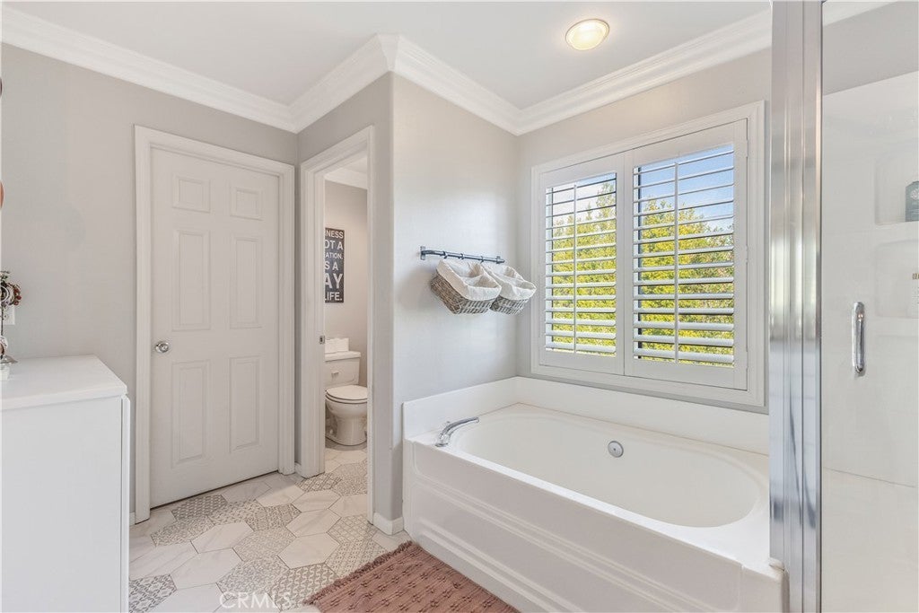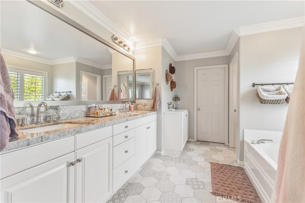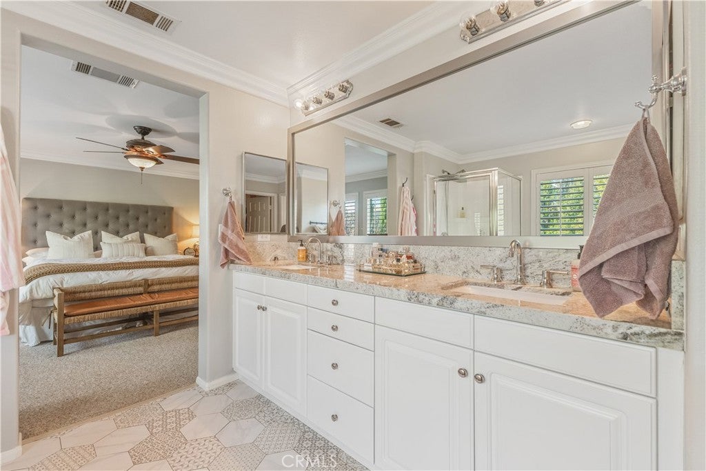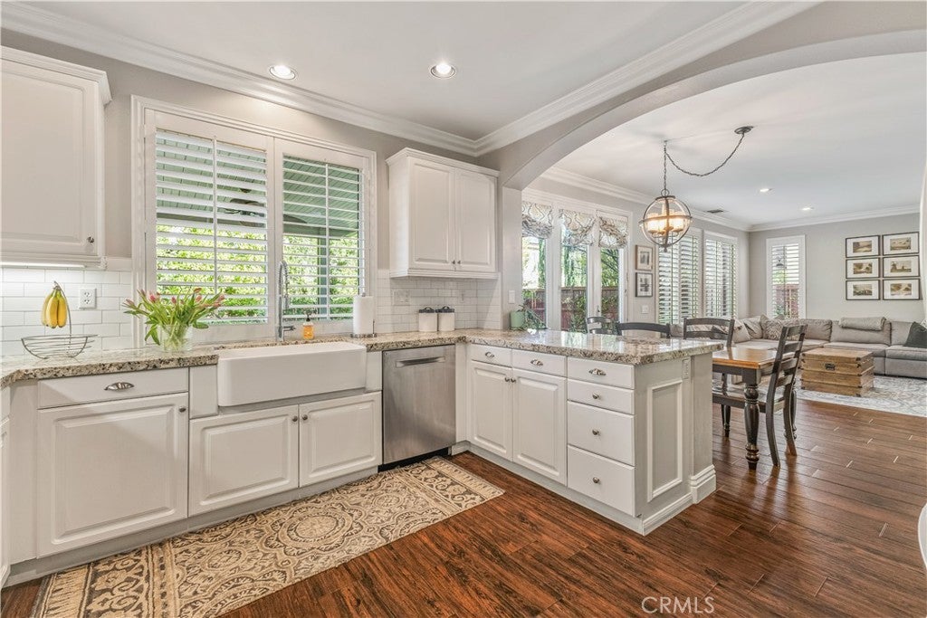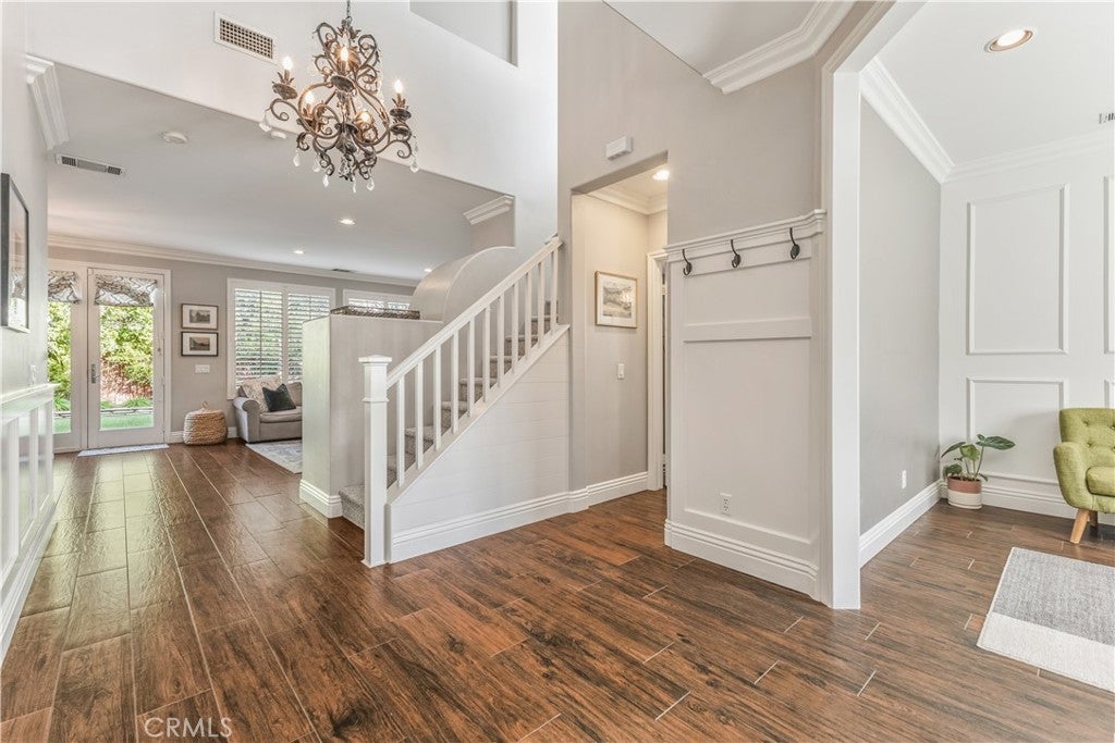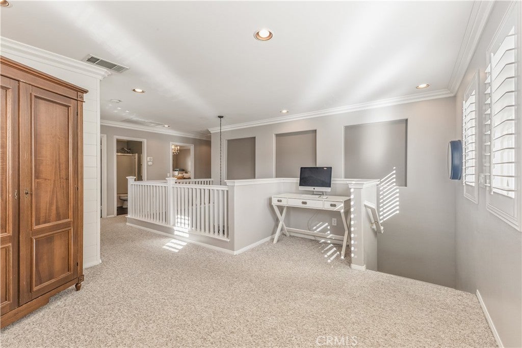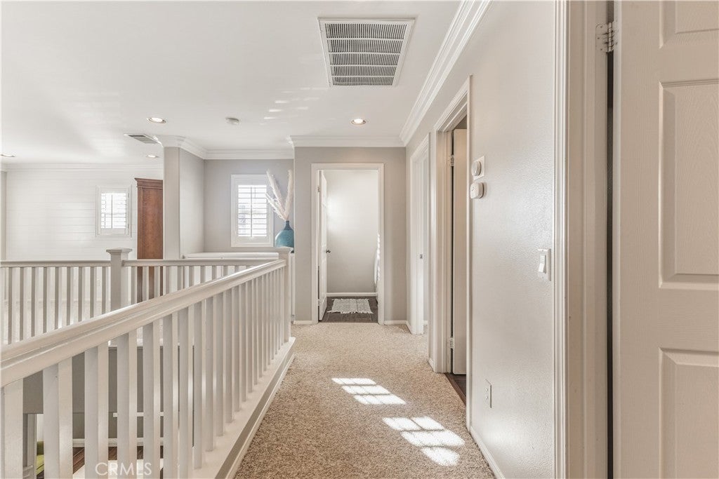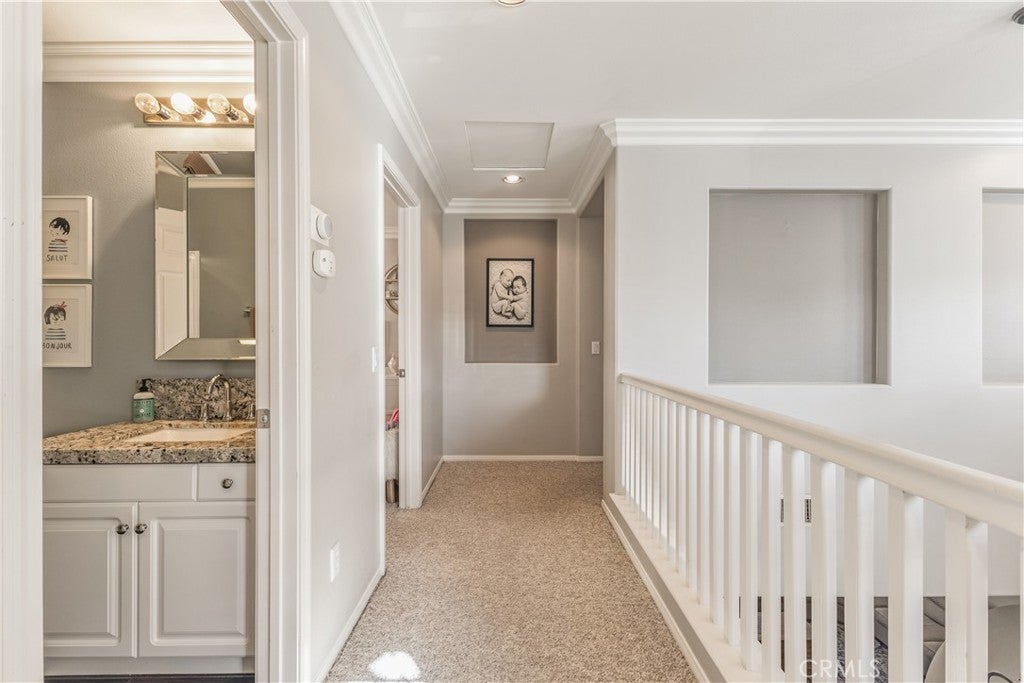 Turnkey, refined, and impeccably maintained, this elegant 3-bedroom, 3-bath Fair Oaks Ranch home offers 2,086 sq ft of elevated living and is tucked away on a quiet cul-de-sac in a highly desirable neighborhood. Thoughtfully renovated and showcasing true pride of ownership, this home blends timeless style with modern comfort. The open, light-filled floor plan features rich beveled tile flooring with the look of dark hardwood and a beautifully appointed kitchen with granite countertops, farmhouse sink, stainless steel appliances, and an inviting eat-in breakfast nook. No detail has been spared — crown molding, baseboards, & wainscoting all professionally installed by Hahnco, plantation shutters throughout, and recessed lighting. Upstairs, a large and spacious loft provides the perfect secondary living area, home office, or media space, along with the convenience of an upstairs laundry room. The luxurious primary suite is a true retreat, offering a generous bedroom, large granite counter top vanity with dual sinks, designer tile, a separate soaking tub and shower, and a walk-in closet. The private backyard is beautifully landscaped with mature trees, offering a serene and private setting complete with a large covered patio ideal for outdoor entertaining, along with low-maintenance turf for easy year-round enjoyment. Plus, there is a separate room downstairs and full bathroom! Conveniently located near Target, Lowe’s, Costco, Trader Joe’s, and a variety of local shops and restaurants, with easy access to the 14 freeway. Too many upgrades to list — this is a home you’ll want to experience in person. A rare, move in ready opportunity in a highly desirable location.