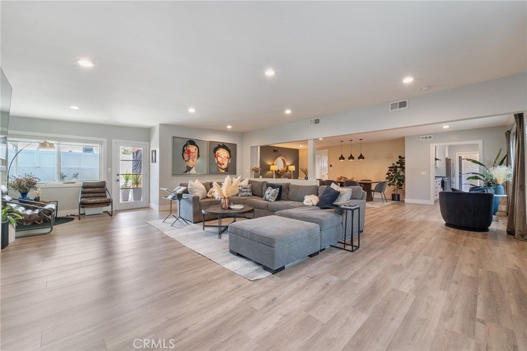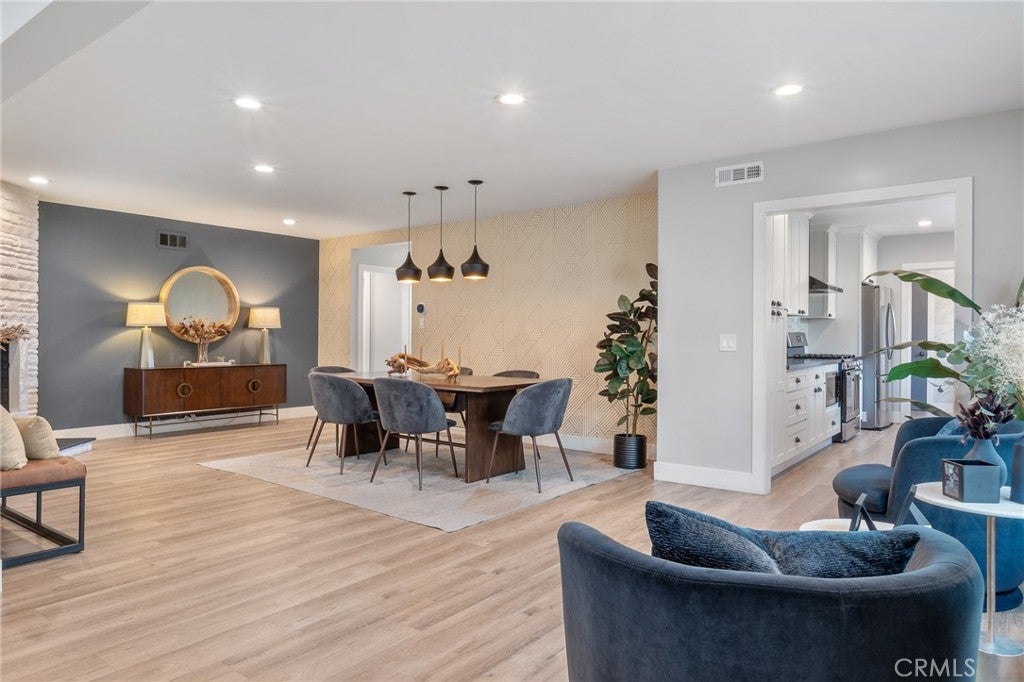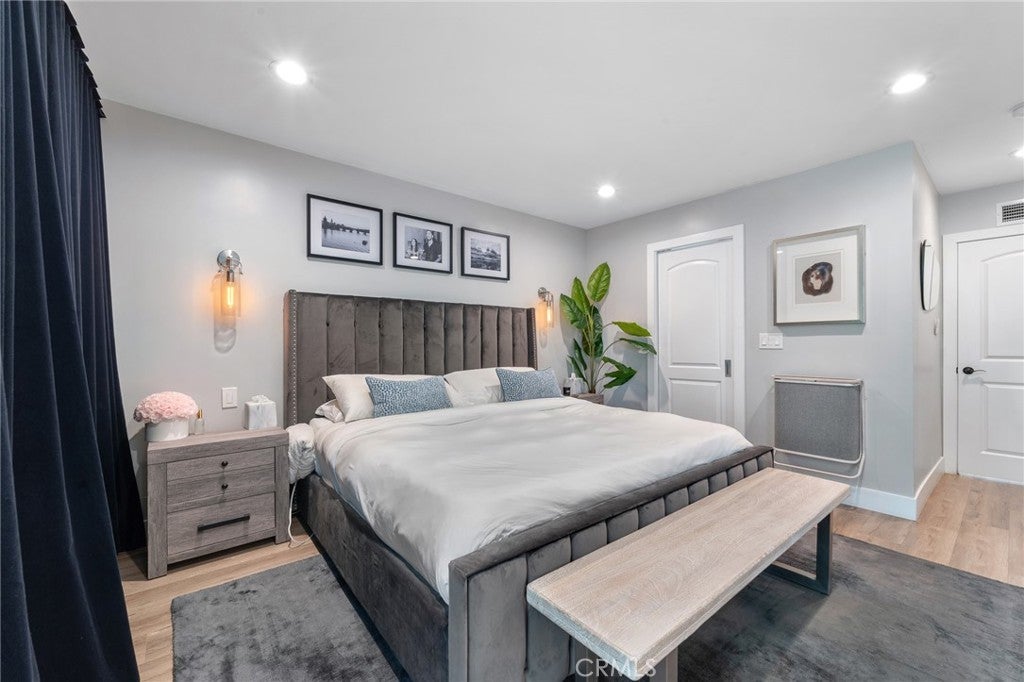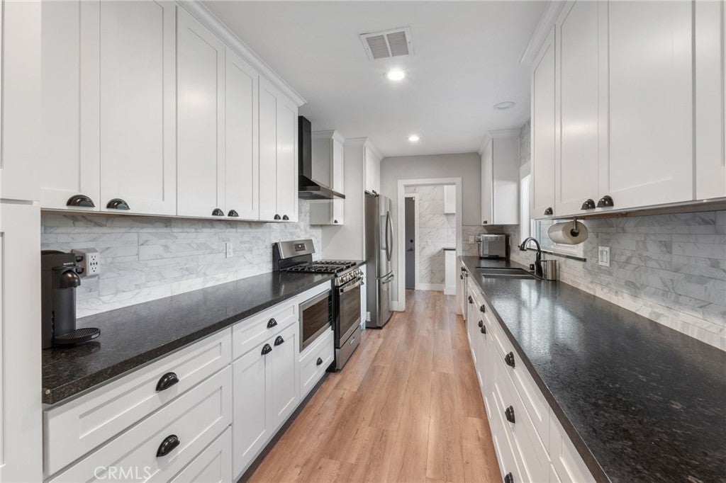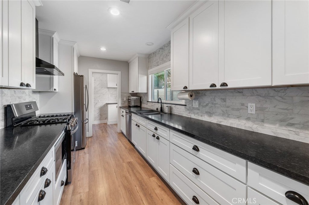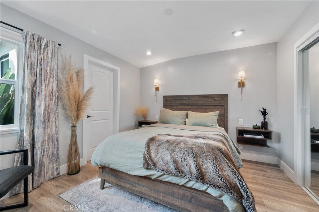 Welcome to this turnkey, thoughtfully upgraded 3-bedroom, 3-bath home offering privacy, smart-home convenience, and seamless indoor-outdoor living. Just under 2,000 square feet on a nearly 6,000 square foot fully fenced lot, this residence feels like a private retreat in the heart of Van Nuys. Over $100,000 in exterior improvements include a newer roof (2020), modern garage door system with remote access, additional side-entrance access, and professionally designed landscaping with drip irrigation and timed sprinkler systems. Layered exterior lighting—elevation sconces, pathway lights, landscape accents, and backyard market lights on timers—creates an inviting atmosphere for evening entertaining, while the backyard features a dedicated entertainment area with accent wood feature wall. Inside, the home has been extensively renovated with updated electrical, recessed lighting throughout on dimmers, and full smart-home integration with remote access and Alexa compatibility. Recent plumbing updates improve water pressure in all bathrooms, and an open-concept layout was achieved through the removal of interior walls and doors, including a pocket door in the primary bathroom. Custom features include a built-in living room bar, custom closets in every bedroom with integrated lighting, additional storage built-ins in the mudroom and garage, two EV charging stations, custom window treatments, and designer wall sconces in select bedrooms and dining areas. Security and privacy are enhanced with full perimeter fencing, five exterior cameras, and a Ring alarm system. A rare opportunity to own a move-in-ready home in the heart of the San Fernando Valley!
