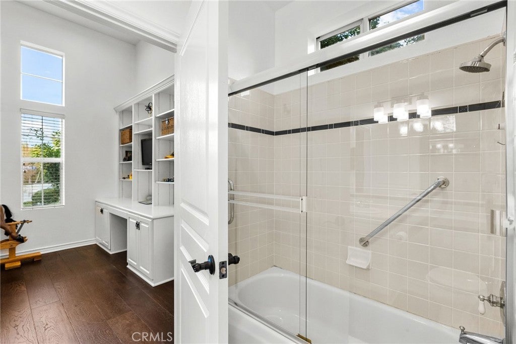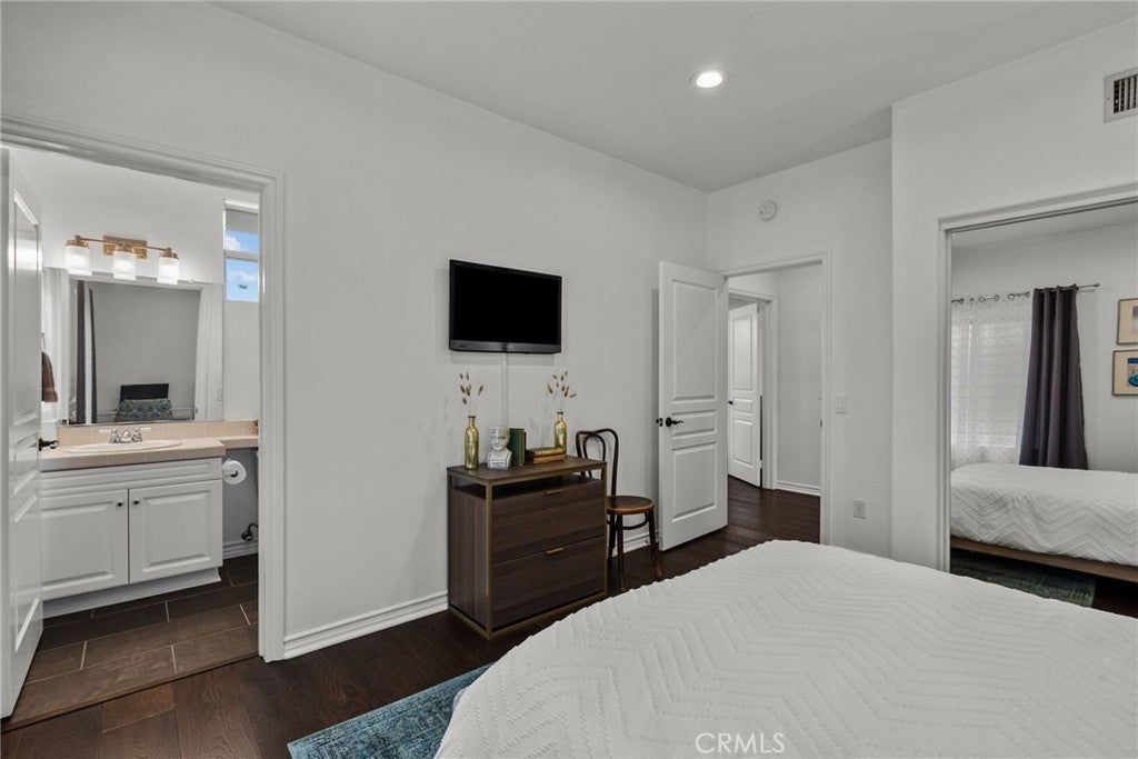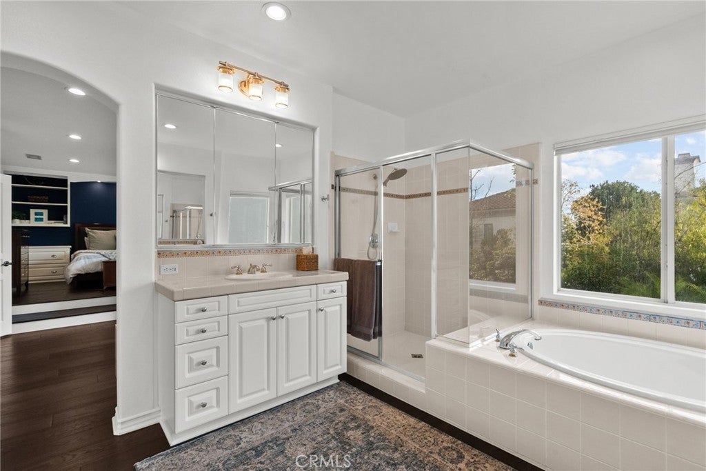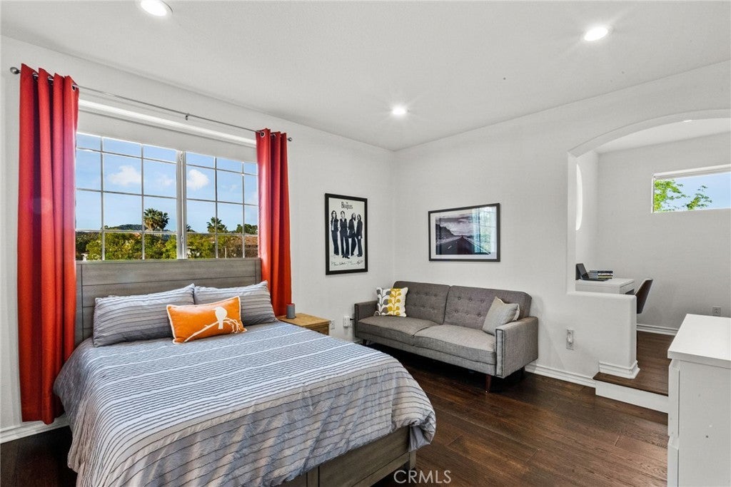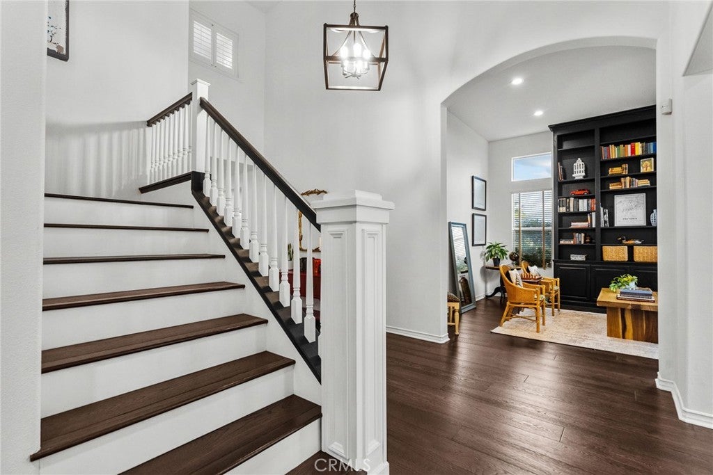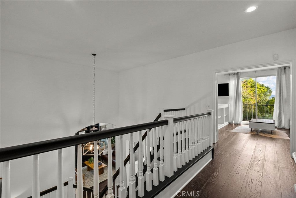 Best-priced home per square foot in Monte Vista, offering exceptional value. Nothing has been overlooked in this Cape Cod inspired residence located within the prestigious Monte Vista community. Offering 3,391 square feet, 5 bedrooms, and 5 total bathrooms, the home reflects disciplined upgrades and a layout designed for long-term living. The property features exceptional privacy with only 1 direct neighboring home, open space along one side, and unobstructed privacy across. A grand entry opens to a formal living room with floor-to-ceiling built-in shelving and a separate formal dining room. The kitchen is thoughtfully designed with stainless steel appliances, a walk-in pantry, expansive center island, and a dedicated dining area that functions as a true gathering space, opening directly to the family room with a wood-burning fireplace and gas hookup option. Two bedrooms are positioned on the main level and share a Jack-and-Jill bathroom, along with a separate powder room. Upstairs, three bedrooms are en suite, along with a spacious laundry room featuring ample organizational storage. The primary suite features a sitting area, private balcony, walk-in closet with built-ins, and a bathroom with dual sinks, shower, and sunken tub. A spacious secondary en suite and a functional, spacious third en suite bedroom with defined areas suitable for additional recreational use complete the upper level. The backyard is private and spacious, featuring a pool and spa with new saltwater equipment and smart LED lighting, built-in barbecue, covered pergola, and mature landscaping with fruit trees surrounding the property. Recent improvements include solid hardwood flooring, updated lighting throughout, dual HVAC systems with new compressors and smart home features, built-in organizers in every closet, and a three-car garage with extensive storage cabinetry. Located in a 24/7 patrolled community within a top-rated school district and convenient to world-class dining and shopping, including the LA Rams practice facility, The Commons, Westfield Topanga, and Topanga Social. Monte Vista is distinguished by low turnover, long-term ownership, and a close-knit community defined by long-term ownership and neighborhood standards.