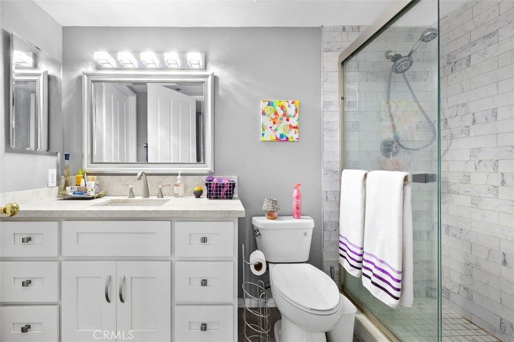 Welcome to Unit 239 at 4501 Cedros Avenue, a beautifully remodeled 2-bedroom, 2-bathroom residence offering 1,151 square feet of stylish living space in the heart of Sherman Oaks. Remodeled in 2020, this light and bright unit is filled with natural sunlight through large dual-pane windows, complemented by elegant plantation shutters throughout. The open living and dining areas create an inviting atmosphere ideal for both everyday living and entertaining. The modern kitchen features quartz countertops, classic subway tile backsplash, soft-closing cabinetry, and sleek Whirlpool appliances, blending timeless design with everyday functionality. The spacious primary suite offers a vanity dressing area and dual access to the primary bathroom, providing both privacy and convenience. Both bathrooms are thoughtfully updated with clean, contemporary finishes. Residents enjoy resort-style community amenities including a sparkling pool, fully equipped gym, and recreation room. Ideally located near shops, dining, and entertainment, this move-in-ready condo offers comfort, style, and convenience in one of Sherman Oaks’ most desirable locations.
