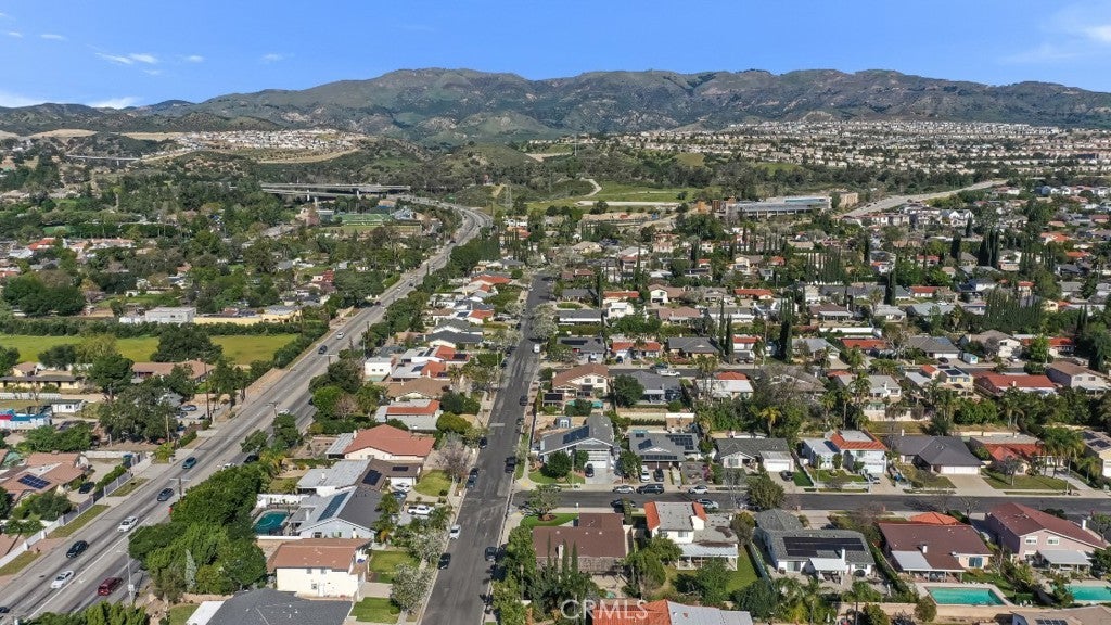Set on a generous corner lot in a family friendly neighborhood of Chatsworth with mountain views from the front yard, this spacious single-story home offers 4 bedrooms, 2 bathrooms, and 1,922 square feet of thoughtfully maintained living space. The expansive 9,159 sq ft lot welcomes you with a brick-accented circular driveway with entry from both bordering streets, manicured landscaping with drought conscious turf and a flourishing shade tree. The brick steps leading to double front doors with decorative glass create a warm first impression. Inside, the open floorplan is ideal for both everyday living and gatherings. Vaulted ceilings, abundant natural light, and well-defined living areas provide a sense of space and comfort, while custom touches reflect years of care and attention to detail. The kitchen offers a cozy breakfast area with sunny bay window, updated hardware, and stainless appliances. The family room, complete with fireplace, dedicated bar area, and custom entertainment center included in the sale, opens directly to the backyard. Outside, a wide pergola-covered patio, pool, and spa offer a wonderful canvas to create your own private retreat. The primary suite features patio access, a walk-in closet, and an en-suite bath, while three additional bedrooms provide flexibility for family, guests, or home office needs. Additional highlights include an updated hall bath, indoor laundry, and a 2-car garage with overhead storage. Well-situated near shopping, dining, recreation, entertainment and convenient transportation corridors in the heart of Chatsworth. Well-loved, well-maintained, and full of potential, this is a home ready for its next chapter and a new family to make it their own.