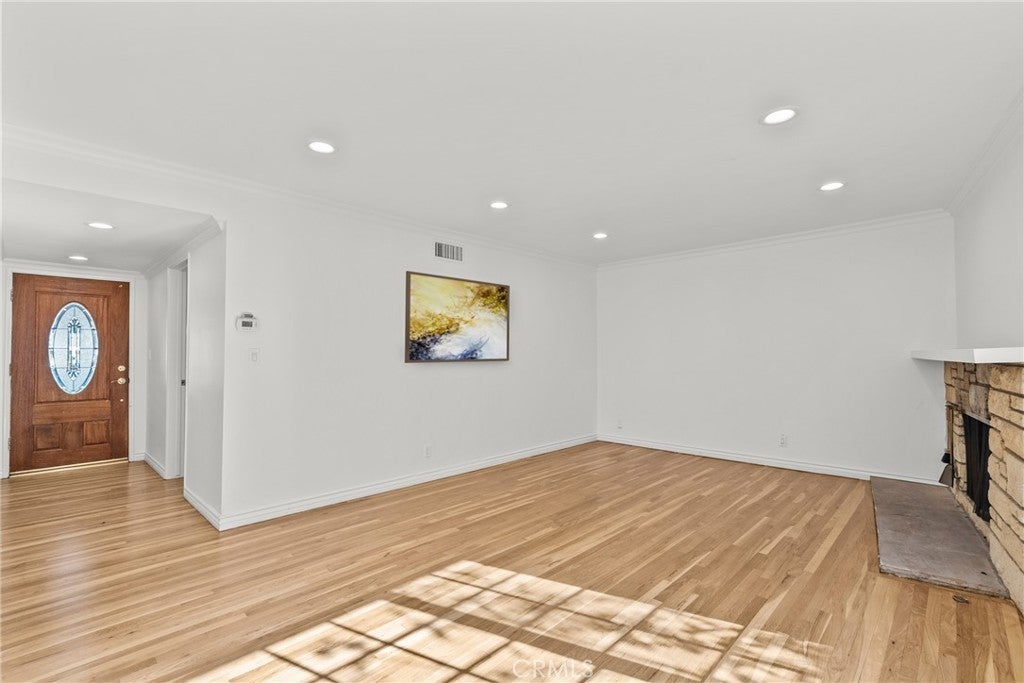 Welcome to this charming single-story home in Chatsworth! This well-maintained residence offers 3 bedrooms, 2 bathrooms, and 1,425 sq. ft. of comfortable living space on a generous 7,841 sq. ft. lot. Hardwood floors flow throughout, complemented by recessed lighting, smooth ceilings, and fresh interior paint. The light-filled living room features a cozy fireplace and an oversized window overlooking the backyard, creating a warm and inviting atmosphere. The spacious kitchen offers ample cabinetry and functionality for everyday living. The primary bedroom includes window shutters and a peaceful retreat feel. Additional highlights include a newer A/C unit, an indoor laundry area, and a enclosed patio that can easily be used as a home office or den. Step outside to a spacious backyard with mature trees and a new sprinkler system—perfect for relaxing or entertaining. A wonderful opportunity to own a beautiful single-story home in a desirable Chatsworth neighborhood.