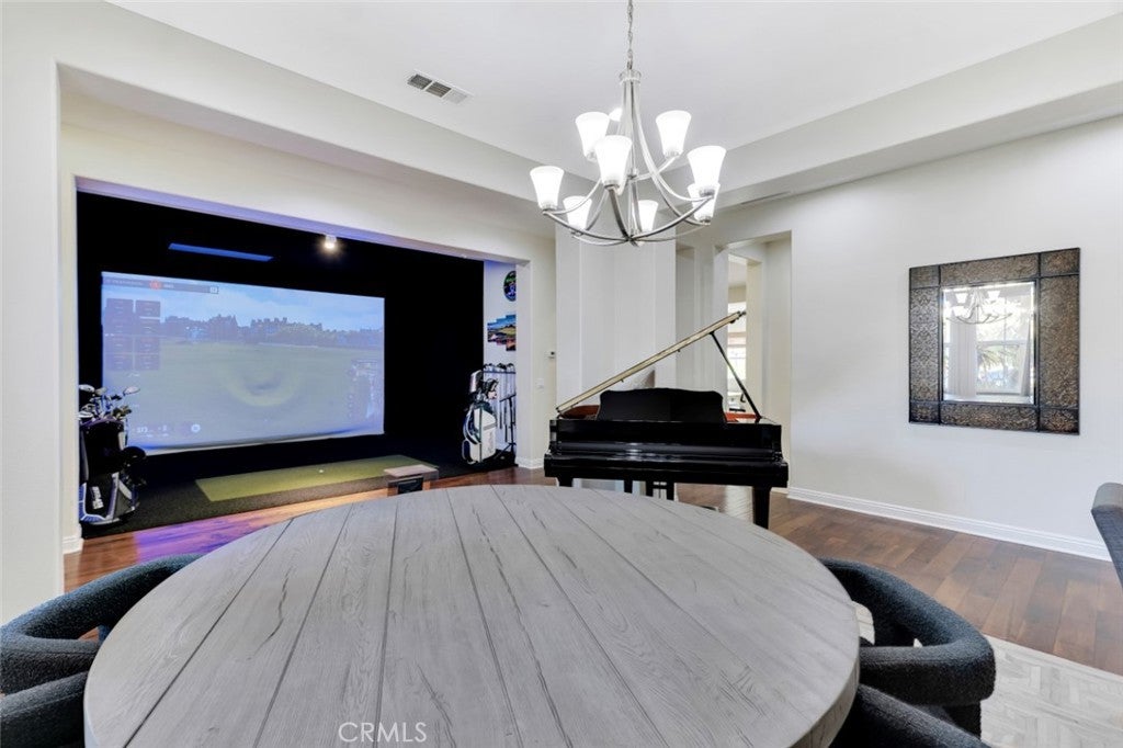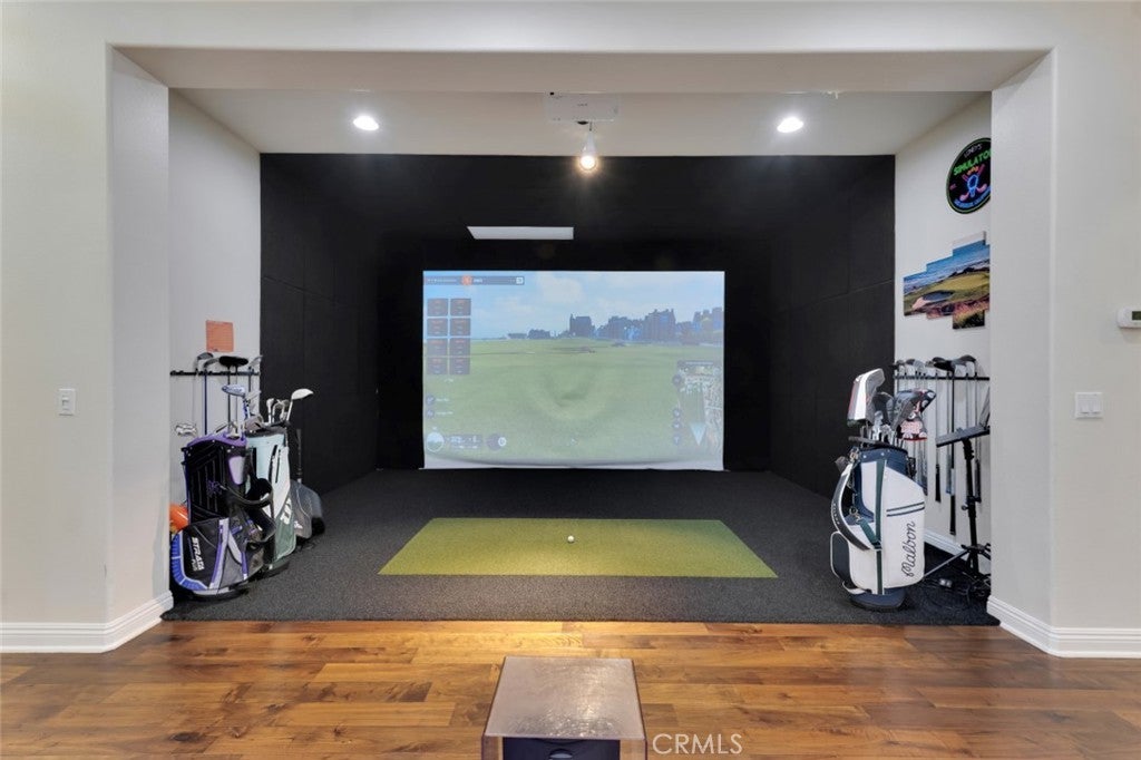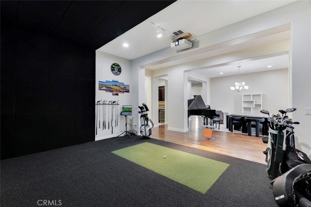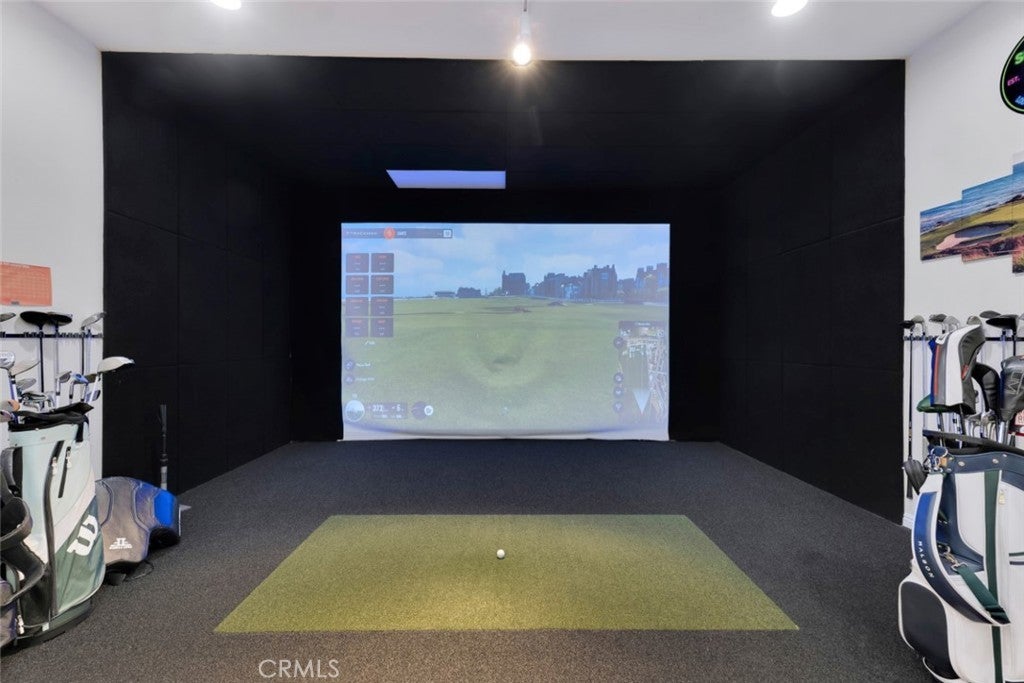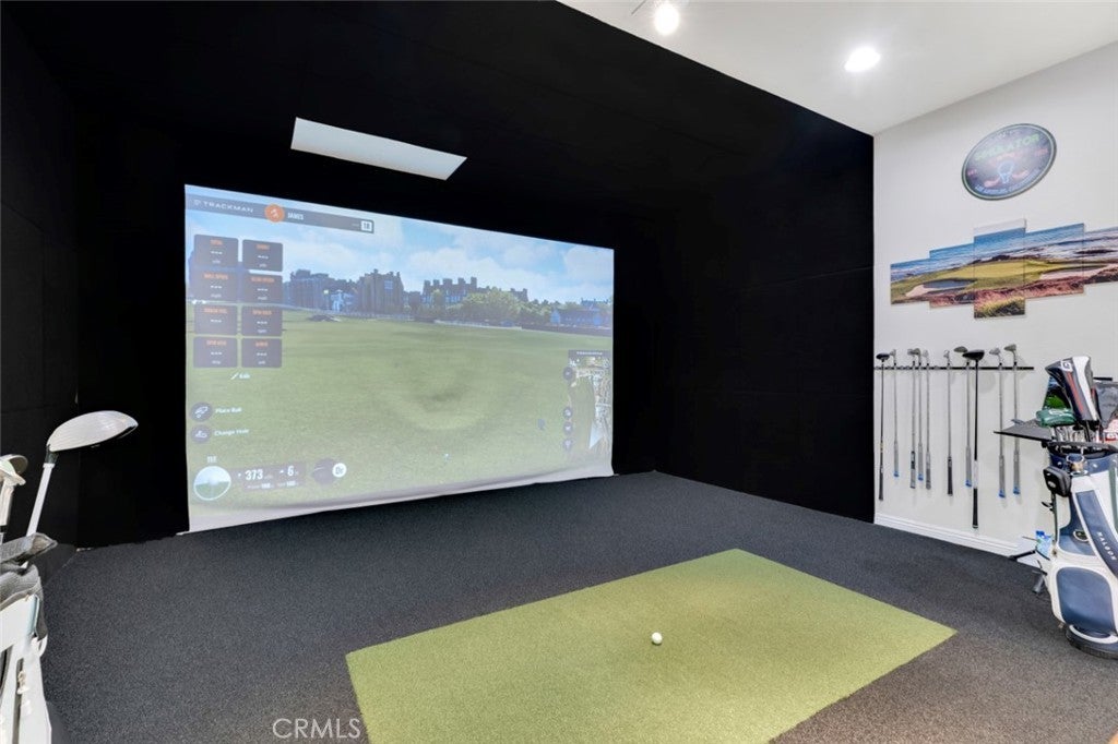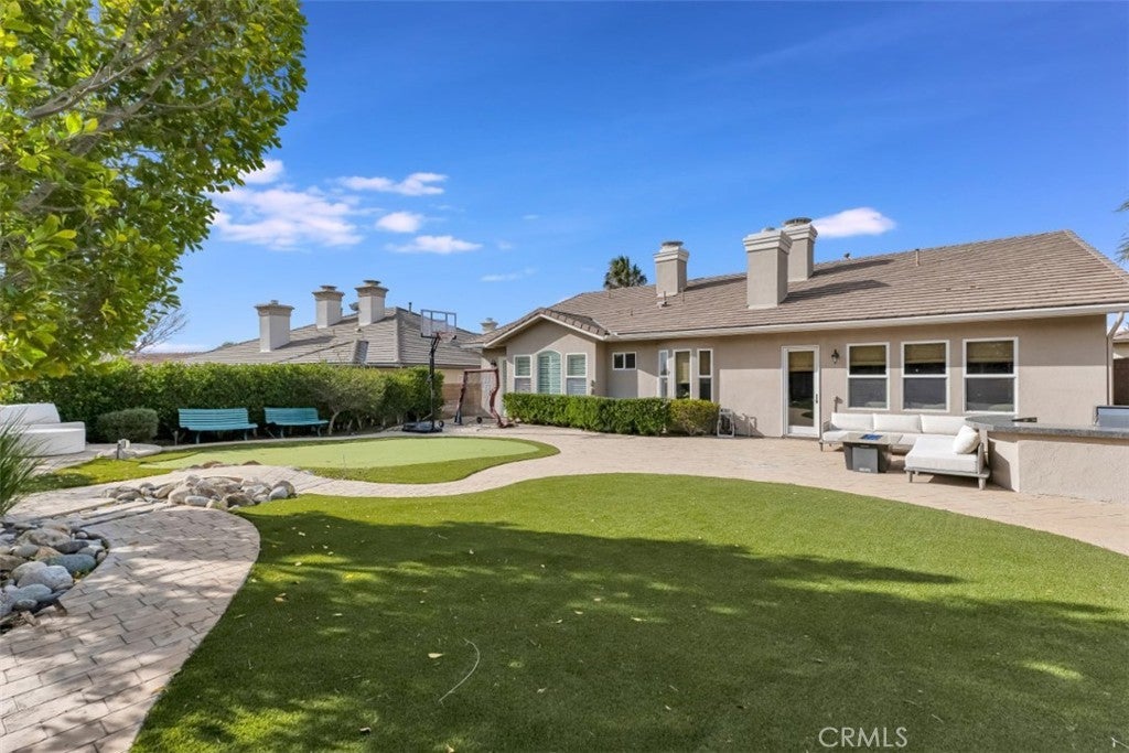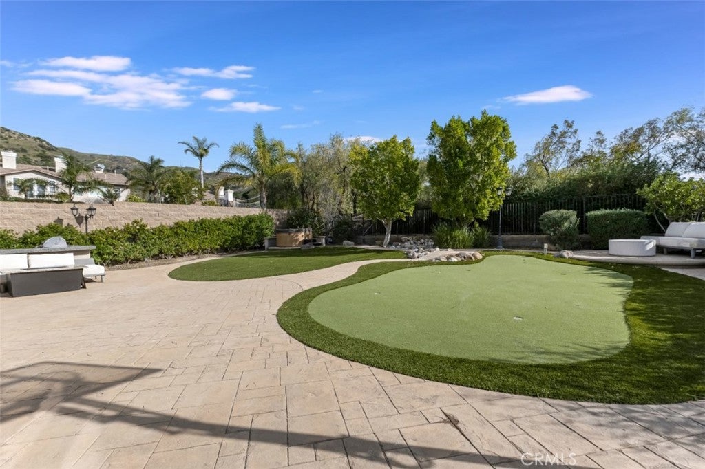 Located within the boundaries of highly rated Porter Ranch schools and set behind the guard gates of the prestigious Renaissance community, this exceptional single-story residence offers an open and airy floorplan enhanced by high ceilings, recessed lighting, abundant natural light, and refined architectural details throughout. The expansive kitchen is thoughtfully designed with generous storage, a large center island with seating and workstation, and a full suite of stainless-steel appliances including a double oven, 6-burner gas range, dishwasher, trash compactor, wine refrigerator, and microwave. The inviting family room features built-in shelving, large windows, and direct access to the backyard, while the formal living room, currently configured as a virtual golf simulation space, and form dining room provide flowing spaces for entertaining. The home offers 4 spacious en-suite bedrooms, including a massive primary suite with double-door entry, walk-in closet, and a spa-inspired bath with dual vanities, soaking tub, and glass-enclosed shower, complemented by a separate powder room for guests. A dedicated laundry room with extra storage and a 3-car attached garage with direct access enhance everyday functionality. The backyard is designed for both relaxation and recreation, featuring a built-in BBQ and gorgeous hardscape meandering between a spacious faux lawn with hot tub area and a custom putting green with raised seating area, all highlighted by lush mature landscaping and surrounded by stunning mountain views. The Renaissance community is known for its 24-hour guard-gated security, beautifully maintained grounds, and community tennis courts, while the location offers convenient access to shopping and dining at Porter Ranch Town Center, nearby hiking and outdoor recreation in the surrounding foothills, and nearby access to the 118 freeway. An ideal setting for everyday living and effortless entertaining, all within a serene, private enclave that captures the very best of Porter Ranch living.