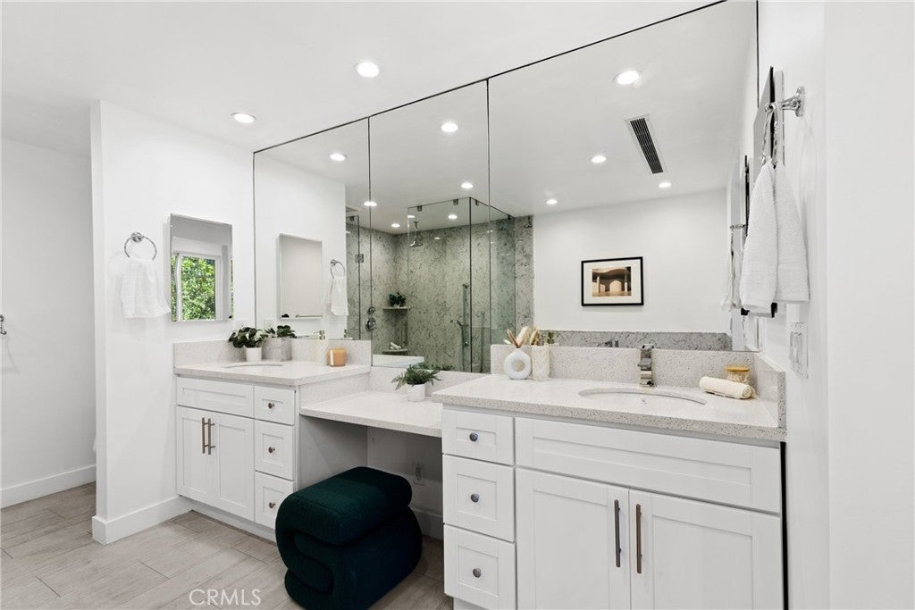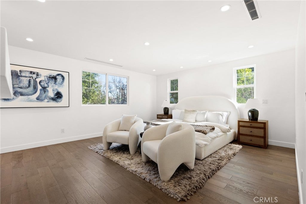 Set behind private gates in the heart of Sherman Oaks, this beautifully updated residence effortlessly pairs timeless elegance with modern luxury. Inside, the open-concept floor plan is anchored by a gourmet chef’s kitchen outfitted with top-of-the-line appliances and a walk-in pantry, this space flows seamlessly into the living and formal dining rooms, creating a connected space ideal for modern living. Upstairs you’ll find three generously sized bedrooms, including a primary suite with a custom walk-in closet and well-appointed bathroom, complete with a soaking tub, rainfall shower and double vanity. The private backyard retreat offers a covered patio and grassy yard, perfect for relaxed outdoor living, while a detached bonus space with its own bathroom and kitchenette provides exceptional flexibility as a home office, guest suite, creative studio or gym. Additional highlights include a main-level bedroom, dedicated laundry room, rich hardwood floors and a two-car garage. Ideally situated on a quiet, tree-lined street in prime Sherman Oaks, this property is within the top-rated Kester school district and just minutes from Ventura Boulevard premier shops and restaurants.