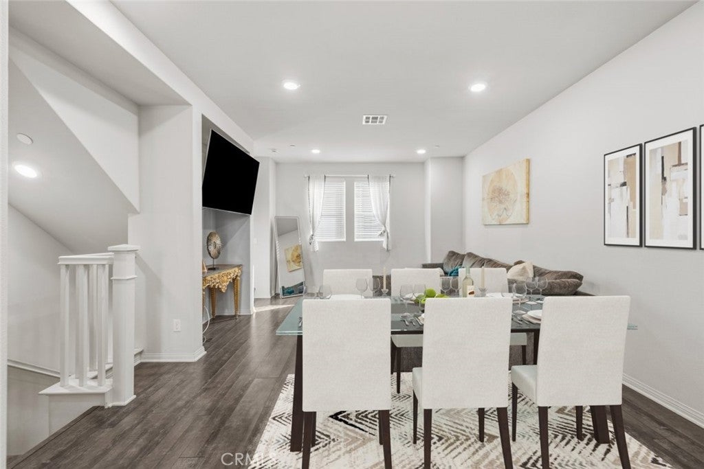 Beautifully maintained two bedroom three bathroom residence offering over 1498 square feet of thoughtfully designed living space in the heart of Van Nuys. Located within a well kept community, this home combines modern finishes, functional layout, and everyday convenience. The interior features an open concept living area with wide plank style flooring, recessed lighting, and abundant natural light. The spacious living room flows seamlessly into the dining area and contemporary kitchen, creating an ideal setting for both daily living and entertaining. The kitchen showcases white cabinetry, generous counter space, stainless steel appliances, and a center island with seating. Both bedrooms are generously sized, each with access to well appointed bathrooms, providing comfort and privacy. The home also includes multiple bathrooms conveniently located throughout the layout, along with an in unit laundry area for added functionality. The exterior community offers well maintained grounds, paved walkways, and a playground located on the property, providing an inviting outdoor space for recreation and relaxation. The neighborhood setting offers a balance of privacy and accessibility within an established residential environment. Centrally located near shopping, dining, schools, and major access routes, this Van Nuys home presents an excellent opportunity for those seeking modern living space with thoughtful amenities in a convenient location.