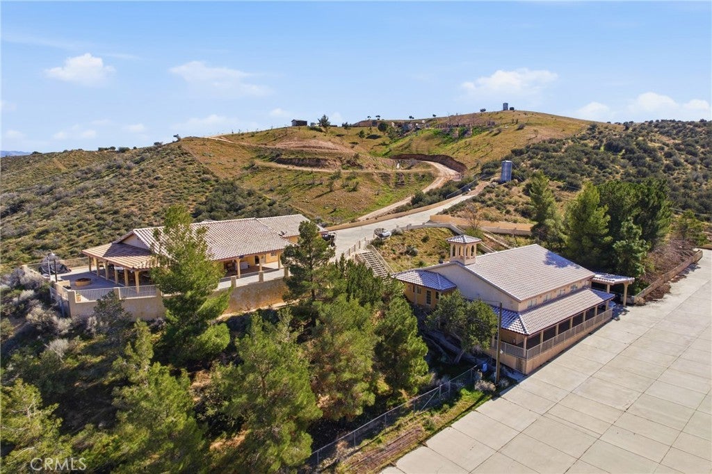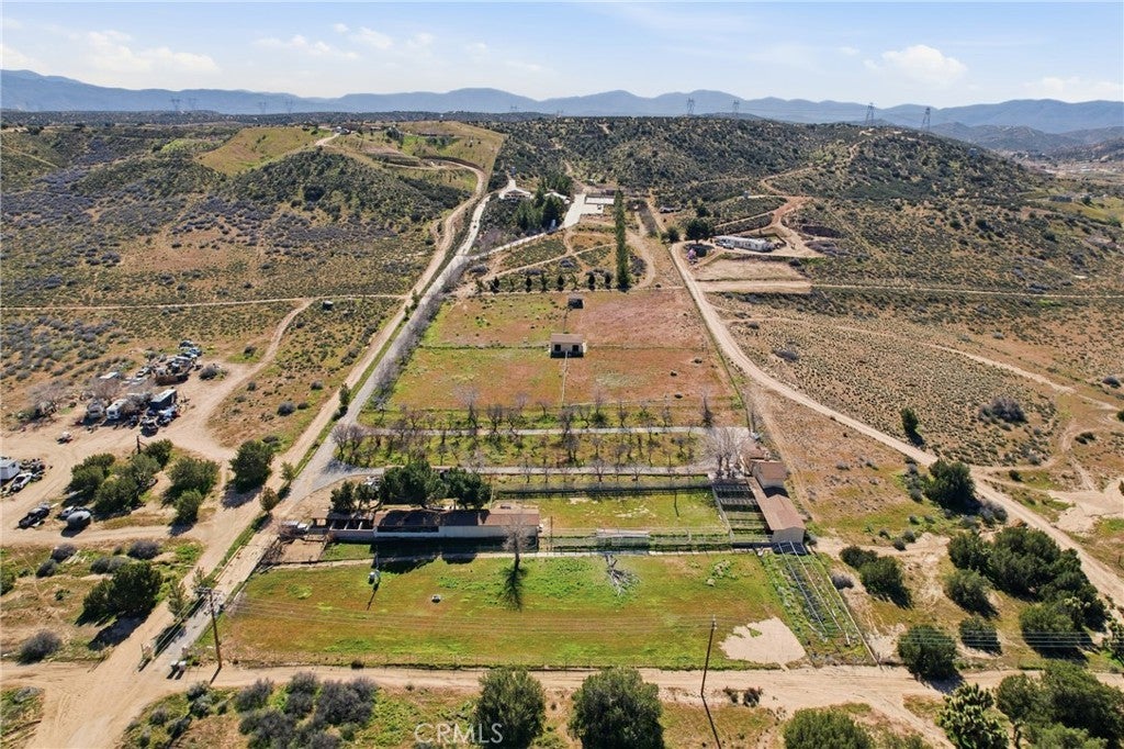 Welcome to a rare 20-acre estate in the desirable Summit Valley area of Hesperia! This exceptional property features a spacious 3-bed, 2-bath main residence with approximately 1,620 sq ft of living space, set atop a hill with expansive mountain and territorial views. The heart of the home offers an open plan living area, well-appointed kitchen, indoor laundry, and plenty of natural light. In addition to the main home, the property includes two significant detached structures: a stunning hall with high cathedral ceilings, chandeliers, full kitchen and bar — perfect for weddings, events or gatherings — and a separate guest cabin with its own kitchen and bathroom. Outside, enjoy fruit trees, multiple barns and outbuildings, a full-size multipurpose court (for basketball, soccer, etc.), RV parking and ample space for horses, toys, gardens or future expansion. With well water, room for agriculture, and endless space for recreation or business use, this property offers unique flexibility and lifestyle potential. Don’t miss this rare opportunity to own a multi-use rural retreat just minutes from town with panoramic views, abundant amenities, and endless possibilities.