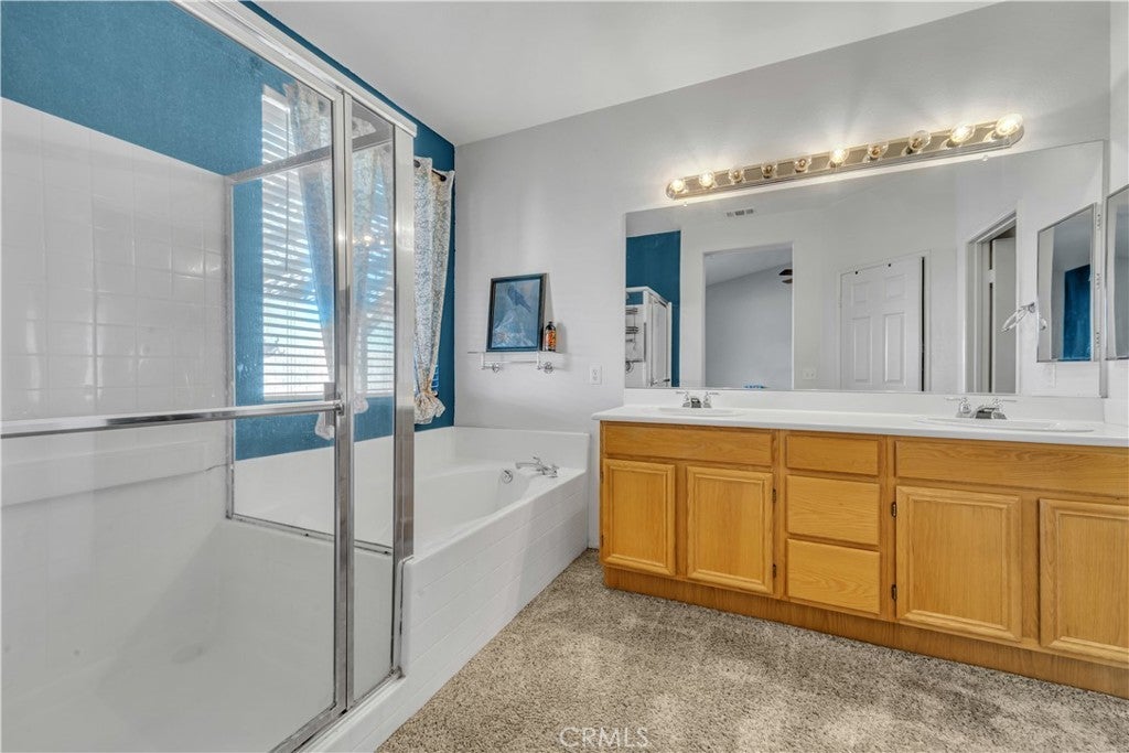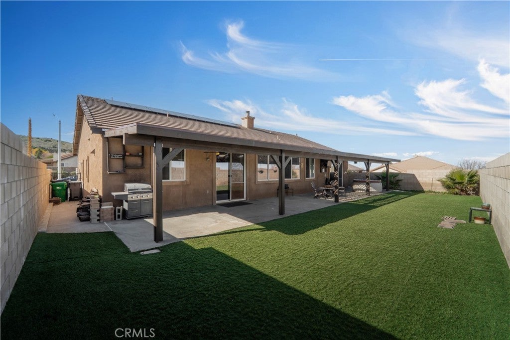 Location Location Location! This beautifully located single-story home sits in a prime area near scenic hiking trails, the Aqueduct, and all your shopping needs, with new restaurants currently being built nearby. Offering four bedrooms and three full bathrooms, this home is designed for both comfort and functionality. Solar panels help keep electricity costs low, while turf in both the front and backyard helps reduce water bills, making the home very economical. Inside, you'll find a formal living room, family room, and a bonus room at the entry, perfect for a home office or flex space. The spacious kitchen features a center island and walk-in pantry and opens seamlessly to the living areas. The primary suite includes a large walk-in closet, walk-in shower, and a relaxing garden tub. Step outside to a covered patio, enjoy beautiful views, and appreciate the privacy of a quiet cul-de-sac location. Call for your appointment today!