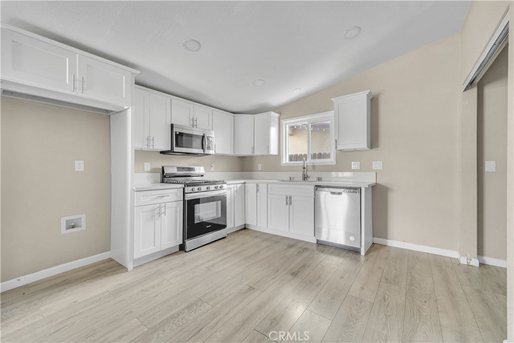 Here is your chance to own this 4-bedroom, 2-bathroom single-story home, situated on a cul-de-sac. This kitchen, which has solid surface counters and stainless-steel appliances, is open to the eat in dining area. The living room has vaulted ceilings and a brick fireplace as well as direct access to the rear yard. The backyard provided space and potential to make it your own. Don't miss the opportunity to purchase this West Lancaster property.