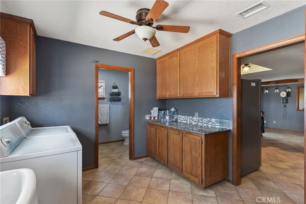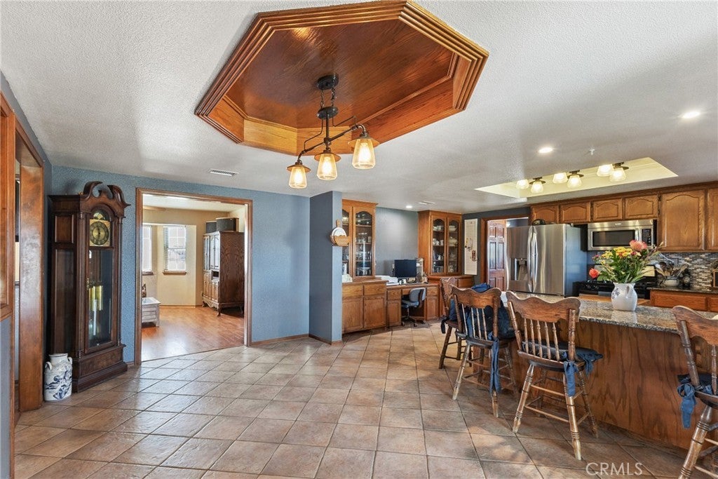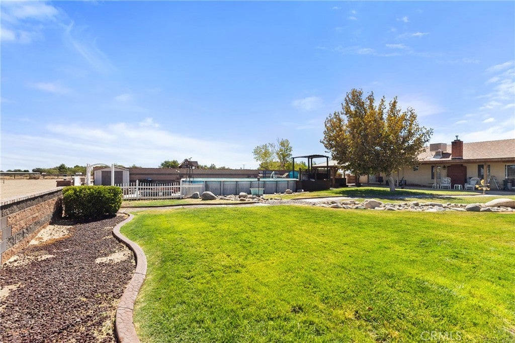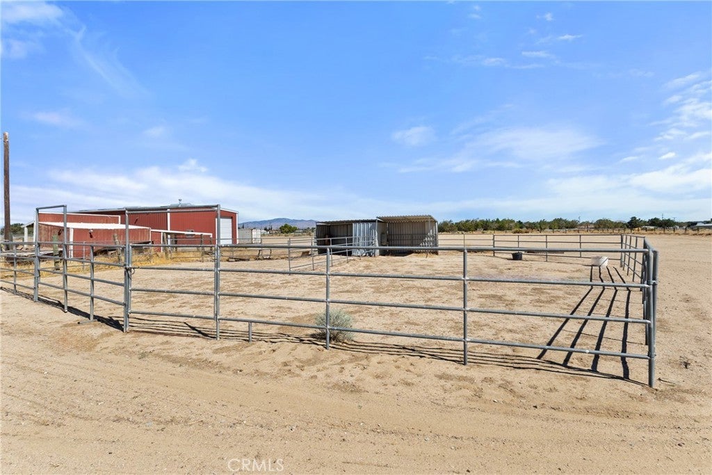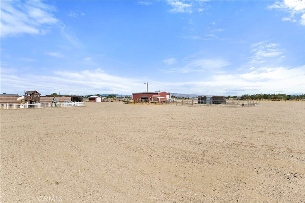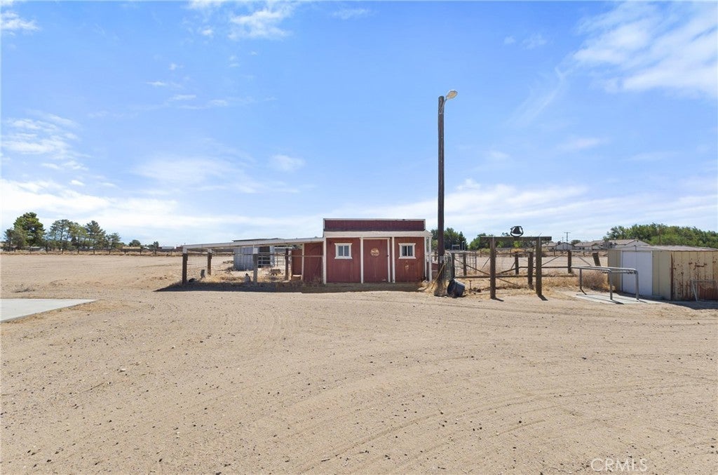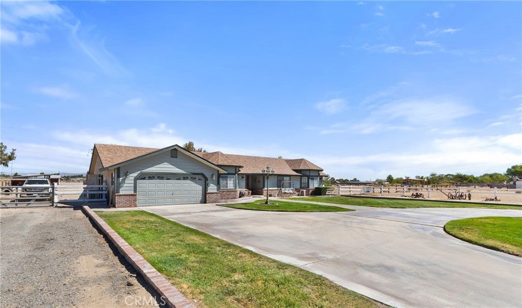 Welcome to your private desert retreat on 5.01 fully fenced acres in peaceful Antelope Acres. This well-cared-for 3-bedroom, 3-bathroom, 2,221 sq. ft. home blends modern upgrades with functional outdoor amenities—ideal for country living, hobbies, and room to grow. The open kitchen is thoughtfully designed with oak cabinetry, granite countertops, tiled backsplash, farmhouse sink, gas range, breakfast bar, built-in china cabinet, and desk area—perfect for both daily living and entertaining. A spacious laundry/mudroom offers abundant storage, pantry space, a sink, and an adjacent bath with an oversized tiled shower. Living areas include a cozy family room with brick-hearth fireplace and pellet stove insert, plus a bright living room featuring bay windows and natural light. The hall bath includes dual sinks and an updated tub/shower combo. Bedrooms are generously sized with ceiling fans, mirrored closet doors in the secondary rooms, and a private primary suite with walk-in closet and en-suite bath. Warm wood doors and accents throughout add timeless character. Outdoors, the fully fenced property offers privacy and flexibility, featuring an above-ground pool and spa, kids’ play area, garden space, and expansive open views. Horse facilities include corrals with shade structures, a tack/tool shed, and an equipment barn—well-suited for animals and agricultural use. The standout feature is the impressive 40×60 workshop, equipped with skylights, 220V power, wood stove, air compressor, and electric roll-up doors—ideal for contractors, hobbyists, or serious projects. RV hookups and a dump station add additional versatility. Additional features include an HVAC system, swamp cooler, leased solar, mutual water supply, and secure block wall fencing, providing peace of mind and functionality. Offering privacy, usability, and wide-open desert views, this property is ideal for those seeking space, freedom, and a rural lifestyle.