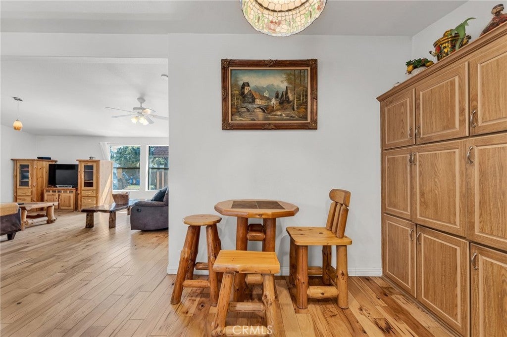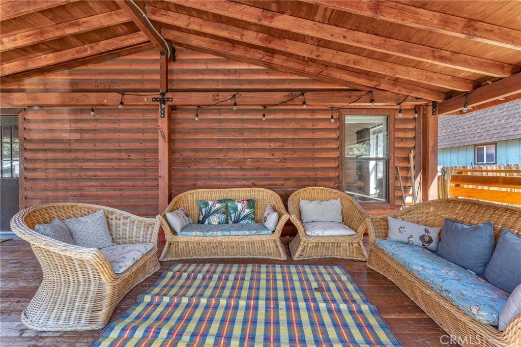 Charming 3-bedroom, 2-bathroom property with manufactured wood log siding, nestled in the heart of Big Bear City. Conveniently located close to everything, within walking distance to the Convention Center and Reserve Lake, and just minutes from Snow Tubing and Snow Play Area, the ski resort, and Big Bear Lake. The house features an open-concept living area, dining area, and kitchen, with hickory engineered floors throughout. It also boasts a huge deck made from redwood, perfect for outdoor enjoyment. The property is being sold with custom furniture, although some pieces are excluded. This home has been a successful short-term rental for many years, boasting high ratings. This is property qualify for FHA loan with min down payment