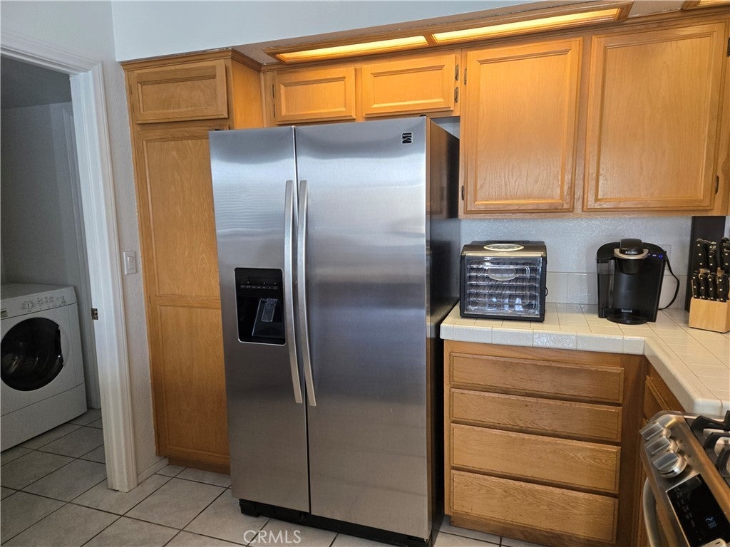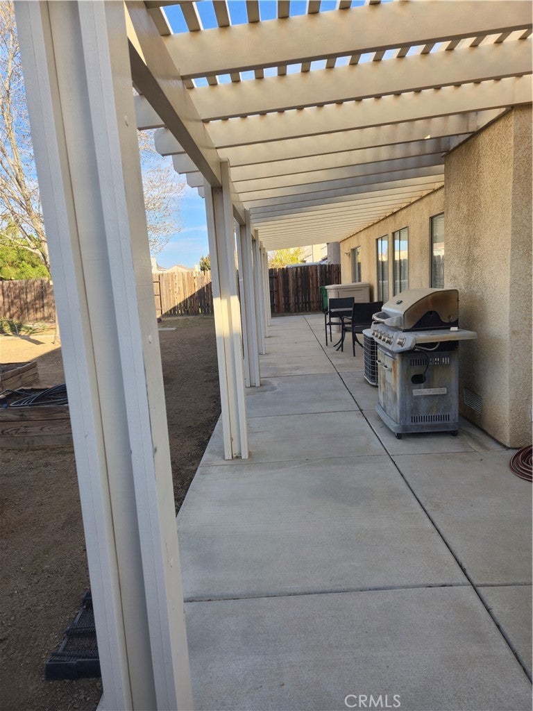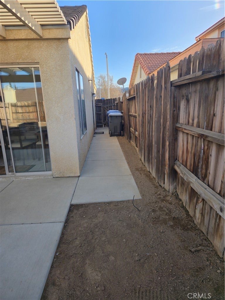 Beautiful, functional and very clean home on the westside of Palmdale in established neighborhood. Ready to sell and move! Open floor plan with room for entertaining, with huge paved, covered patio off kitchen/dining room. This home has a great layout with very large living room, great lighting, lots of windows and wonderful bedrooms and bathrooms. Master shower has 2 glass windows (!) off master suite and walk in closet. Master bedroom has direct access to covered patio, perfect for spa? Hall bath has shower tub combo with clean and beautiful tile countertops. There are 2 additional bedrooms off a wide hallway with well-placed windows. New paint, finished ceilings, and direct access to garage. Garage walls are finished with custom workbench seller is leaving. Large oversized concrete driveway. Home is located near shopping and good schools, Marie Kerr Park. Quiet well maintained, neighborhood