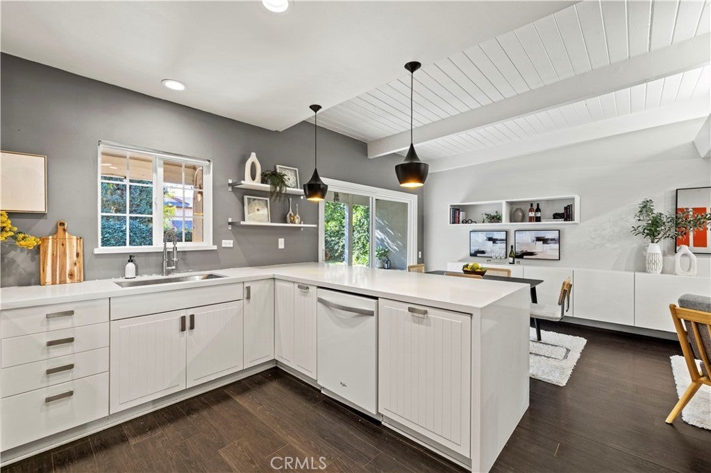 DUAL-LIVING OPPORTUNITY WITH RENTAL POTENTIAL! Designed in 1966 by renowned Cliff Olsen & Associates, this classic mid-century modern residence beautifully blends timeless architecture with today's lifestyle living. The main home is 1,923 sq. ft, featuring 3 bedrooms and 2 bathrooms, and showcases hallmark mid-century details including exposed beam ceilings, clean lines, open concept and an airy feel throughout. The spacious living room is anchored by a striking fireplace adorned with petrified wood, creating a unique focal point. Entertain with ease in the formal dining room, or relax in the separate family room, offering flexible living spaces. The modern kitchen features custom white cabinetry, Quartz counter tops with waterfall edge, stylish pendant lighting, a built-in wolf range, microwave and oven and a convenient breakfast bar ideal for casual dining and entertaining. The property features 3 bedrooms that includes a primary suite featuring designer carpet, a spacious walk-in closet, and a private en-suite bathroom. A sliding door provides direct access to the rear grounds, seamlessly blending indoor comfort with outdoor living. Relax, unwind, or entertain your guests in your private backyard and front courtyard . The expansive outdoor space provides a perfect setting for outdoor gatherings, barbecues, or simply unwinding in the fresh air. The serene atmosphere offering an escape from the hustle and bustle of everyday life. Adding exceptional value is a detached, potential income-producing ADU offering 432 sq ft with 1 bedroom and 1 bathroom—perfect for rental income, guests, extended family, or a private home office. Centrally located to the 118 freeway, parks, hiking trails, supermarkets, restaurants and the Vineyards of Porter Ranch. Schedule a viewing today and start envisioning the possibilities of calling this Mid-Century home your own!