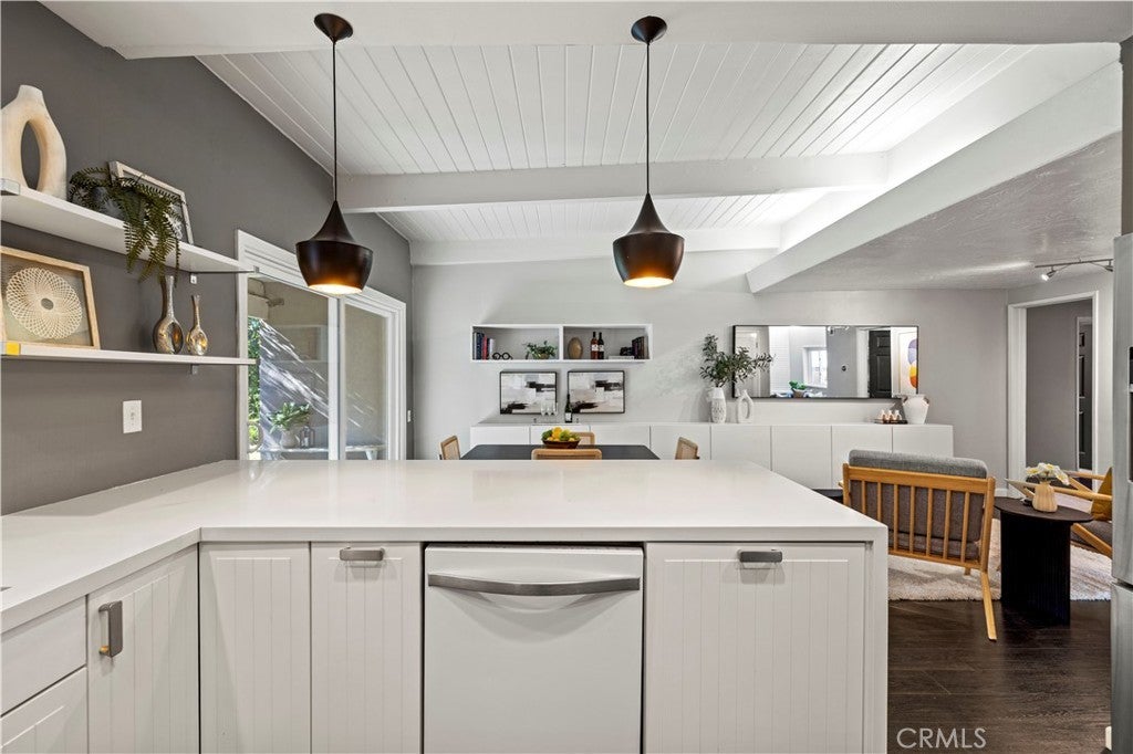 • Interior FeaturesBeamed Ceilings, Breakfast Bar, Separate/Formal Dining Room, Eat-in Kitchen, Open Floorplan, Quartz Counters, All Bedrooms Down, Primary Suite, Walk-In Closet(s), Track Lighting