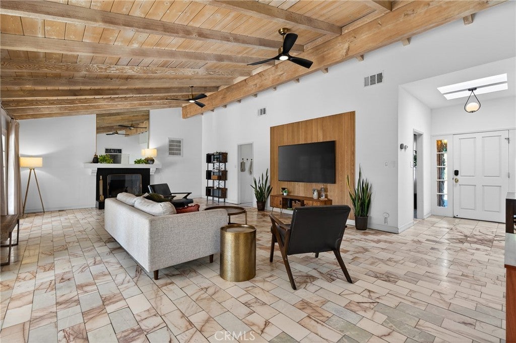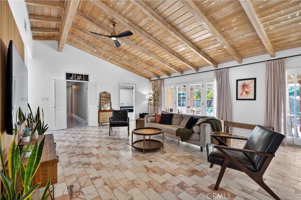 Set on a generous half-acre lot in a peaceful Chatsworth setting, this 4-bedroom, 2-bath home offers privacy, space, and exceptional potential. The open-concept kitchen and dining area flow seamlessly into the living space, filled with natural light and highlighted by exposed wood ceilings and a wood-burning fireplace that brings warmth and character throughout. The expansive primary suite features a large walk-in closet and a private en-suite bathroom, creating a true retreat. The floor plan also allows for space to add another half bath for added convenience and value. Outdoors, the completely gated and private grounds showcase a resort-style backyard designed for both entertaining and everyday enjoyment. The pool includes a recessed spa, waterfall, slide, swim-up wet bar, and a sunken BBQ area, surrounded by spacious yard areas with mature fruit trees scattered throughout all perfect for entertaining. With neighboring properties featuring horses, the setting blends peaceful rural charm with modern comfort. Additional features include covered RV parking and an extended driveway with ample room for vehicles, recreational toys, and play space, along with a large attached two-car garage. A rare opportunity to own a private, character-filled property with land, lifestyle amenities, and room to grow and add value. It's is the perfect opportunity for you to put your own stamp on the property and create something truly special.