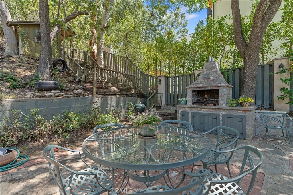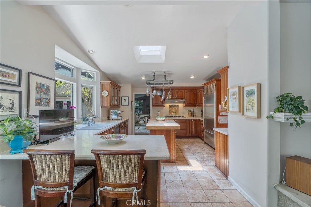 Looking for the convenience of city living, but with the feel of being in the country? Tucked away at the end of a long and private driveway, this hidden gem resting on almost 1/2 acre in Encino offers the ultimate in tranquility, privacy and charm. Surrounded by lush, mature trees and secured behind gates, this 4 bedroom, 3 bathroom home feels like a peaceful retreat while still being moments away from all the conveniences this location offers. Step inside the formal entry to find spacious, traditional living areas, a formal dining room with wet bar, and a formal step down living room, all perfectly situated to host your family dinners or guests. A well-appointed kitchen is bathed in natural light thanks to both a skylight and oversized south-facing windows. A generous kitchen island with breakfast bar makes it the heart of the home, and features stainless steel appliances with double ovens. Adjacent to the kitchen is the great room, complete with a built-in banquette for everyday meals, a stone hearth and fireplace, custom built-in bookcases and windows everywhere to provide views of the yard. Down a long hallway, you will find three bedrooms and two baths, with the primary bedroom and oversized primary bathroom tucked privately at the rear of the property. A fourth bedroom on the other side of the home features an en-suite bath and is currently set up as a working art studio, with French doors that open to views of the yard and swimming pool. The outdoor spaces create a true sanctuary - a sparkling pool, multiple dining or outdoor lounging areas, an incredible brick outdoor BBQ and the most whimsical treehouse nestled high among the branches, offering a touch of magic and wonder for all ages. Seeking a quiet place to unwind? This secluded property delivers privacy, natural beauty, and comfort. If you crave serenity and character and want access to Encino’s best elementary school, Mulholland Drive and the westside within minutes, this home in one of the valley’s most desirable neighborhoods is for you.