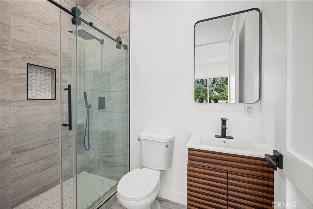 Open House Feb. 14th 10-12am. Exceptional Lake Balboa ADU with yard. Approximately 1,200 SF of expansive, light-filled living space offering 3 bedrooms and 3 beautifully appointed bathrooms, including two primary suites with walk-in closets. Soaring 10-foot ceilings and an open-concept floor plan create an airy, sophisticated atmosphere ideal for both everyday living and entertaining. Oversized windows provide abundant natural light throughout. This fully gated, all-electric residence features solar panels, a fire sprinkler system, and generous front and side yard green space—perfect for indoor-outdoor living. Thoughtfully finished with modern cabinetry, quartz countertops, laminate flooring, and new doors and windows. The home includes brand-new appliances, including a refrigerator, washer, and dryer, along with new electrical, plumbing, insulation, and HVAC systems. A rare turnkey ADU offering privacy, comfort, and elevated modern living in Lake Balboa. Available for move in March 15th.