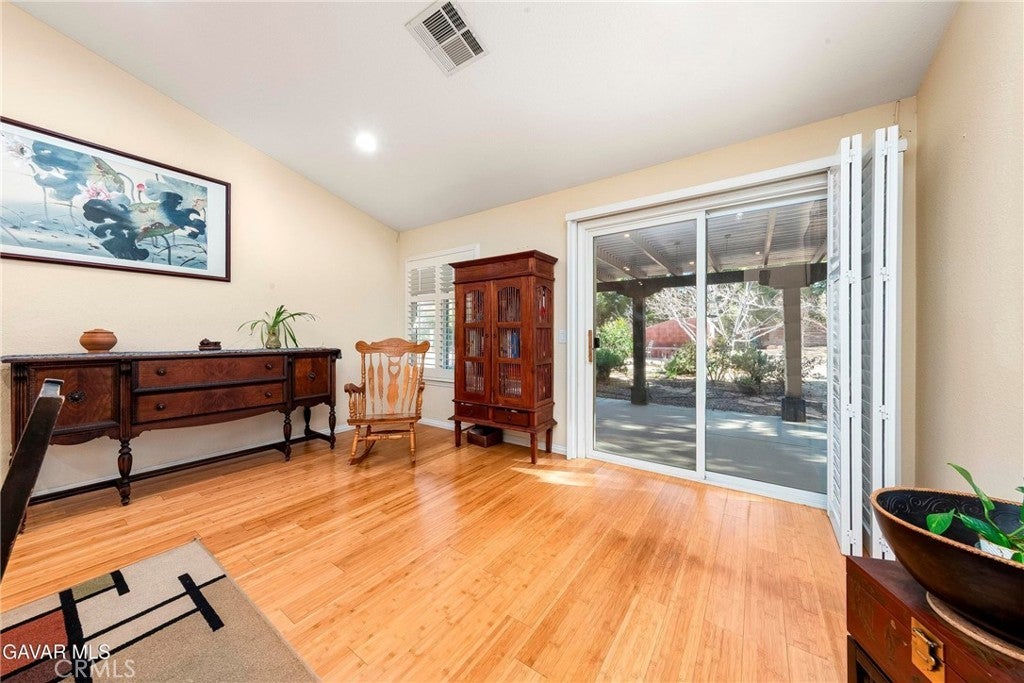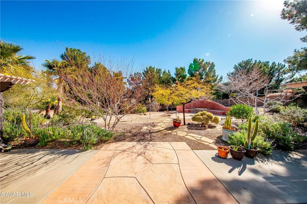 Nestled within the PRIME GATED COMMUNITY of California Chateau in West Palmdale, this beautifully upgraded home sits on an extra large lot exceeding 24,000 sq ft, offering plenty of space and privacy. Step inside to discover plantation shutters throughout, bamboo flooring, and a thoughtfully designed layout that flows beautifully for both everyday living and entertaining. The home offers a spacious living room, a formal dining area ideal for hosting, and a charming breakfast nook for casual meals. The kitchen is a standout, featuring quartz countertops, a built-in coffee bar, and ample workspace for cooking and gathering (chopping block not included in sale). Just beyond, the separate family room with a cozy fireplace is enhanced by French doors that open directly to the backyard, creating a seamless indoor-outdoor connection. The master suite is a true retreat, complete with a sitting area, a custom walk-in closet and a second closet for ample storage. The master bathroom boasts a custom vanity, a newly upgraded shower with gorgeous tile and a separate soaking tub. The second bathroom has been fully remodeled with a custom vanity and gorgeous new shower including new fixtures. A spacious laundry room with sink and built-in cabinetry adds everyday convenience. Step outside to an expansive covered patio spanning the entire length of the home, offering the perfect setting for entertaining, dining, and hosting memorable gatherings. The backyard is a gardener's dream, featuring mature fruit trees including apple, pomegranate, fig, Asian pear, pistachio, jojoba, sour cherry, and apricot. Additional highlights include a 3-car garage with epoxy flooring, newer AC and heating unit, and exterior upgrades such as fresh exterior paint completed approximately five years ago, a new porch cover, and a new garage door. Don't miss the opportunity to become a resident of this private gated community. Welcome Home.