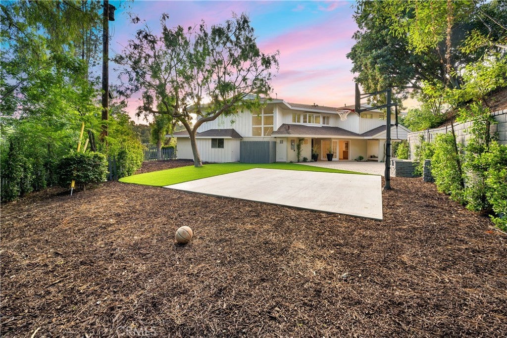 Nestled in the hills of Encino on an expansive private lot. If you are looking for privacy and security, this is definitely the property to be looking at. Enjoy this prime south of the Boulevard location, ideally situated within a highly rated school district and close proximity to everything the Valley and Westside have to offer. Tucked behind a private gate at the end of a long driveway, the current home welcomes you through double doors into a spacious family room that overlooks the lush backyard and flows seamlessly into the formal dining room. A culinary enthusiast's dream, the gourmet kitchen is equipped with chef grade Thermador appliances, custom cabinets, a massive island with seating and walk-in pantry. Rounding out the main level is a sizable living room that boasts a stunning fireplace and walls of glass that flood the space with natural light, laundry/mud room and secluded bedroom. Retreat upstairs to the stately primary suite, complete with a custom walk-in closet and sumptuous bathroom that features a soaking tub, rainfall shower system and double vanity. Additionally, you will find three generously sized bedrooms upstairs, one of which has an ensuite bathroom. Surrounded by mature landscaping, the serene backyard oasis is the perfect spot to relax or entertain guests. This expansive property offers a sparkling pool, covered patio, sports court and grassy yard. Further amenities include a two car carport, large driveway with abundant parking and ample storage space throughout, including an attached storage shed.