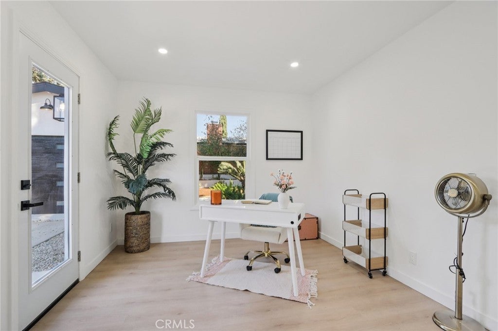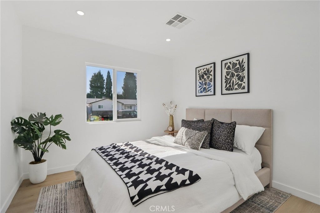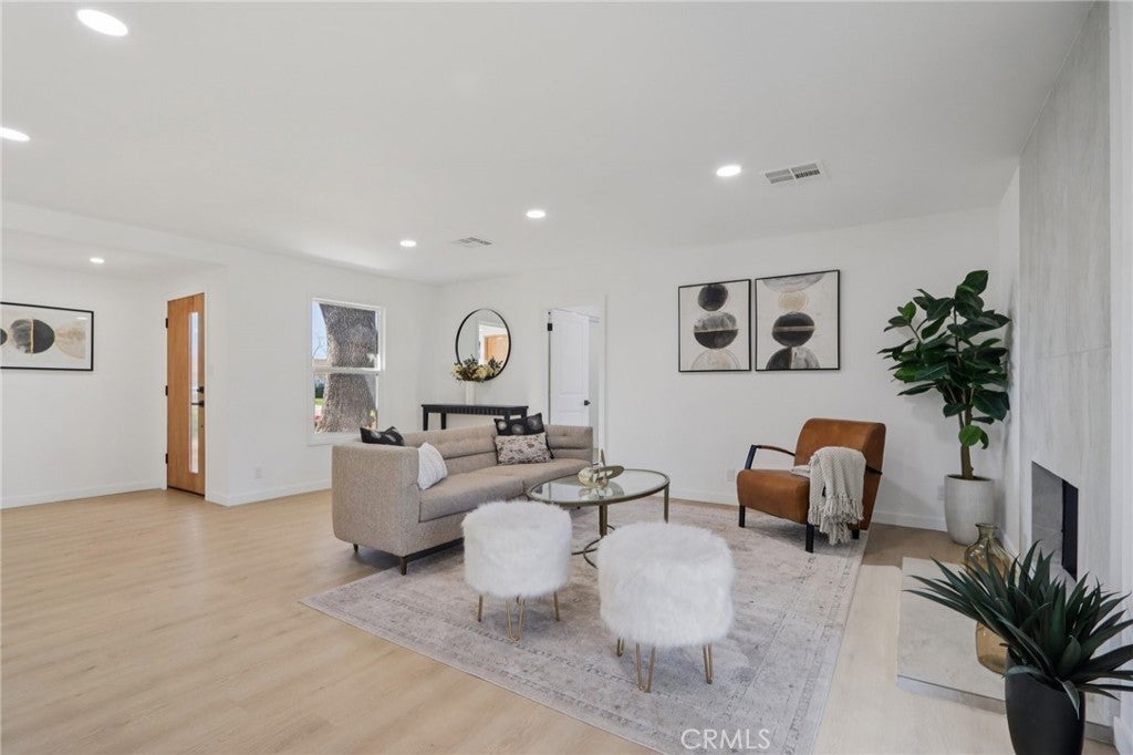 Turnkey 4 bedroom, 2 bathroom home located on a quiet street in Granada Hills. The property has been extensively renovated and is move-in ready. Improvements include new windows, new flooring throughout, recessed lighting, new interior and exterior doors, and a brand-new HVAC system. Both bathrooms have been fully remodeled. The kitchen has been completely redone with new cabinets, quartz countertops, backsplash, and new appliances. Major items have been addressed with a newer roof, newer electrical system, and solar panels (lease). The exterior features a new concrete driveway, new garage door, new sprinkler system, and new exterior lighting. Long driveway leads to a detached garage with plenty of parking. Architectural plans have already been paid for to convert the detached garage into a 1 bedroom, 1 bathroom ADU. There is also potential for a JADU, as the primary bedroom is located on the side of the home with its own bathroom (buyer to verify with city). Convenient location close to schools, shopping, and freeway access.