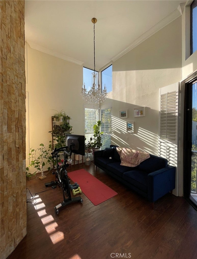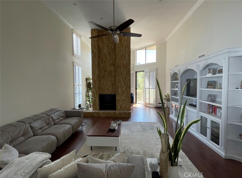 Sherman Oaks dream home two blocks SOUTH of Ventura Boulevard. Spacious TOP FLOOR CORNER UNIT,PENTHOUSE unit with 13-foot HIGH CEILINGS LIVING SPACE and tons of NATURAL LIGHT. Spacious light-filled living rooms with high ceilings, stone fireplace, built-in shelves, office nook & balcony with gorgeous south-facing view of the hills. Large Dining room leading to updated kitchen with quartz counters and stainless GE appliance, double oven, 5 burner stove and sunny breakfast area. Oversized Master bedroom with 2 walk-in closets & a large wall closet. Master bath with double vanity & separate tub/shower. Second bedrooms with a walk-in-closet and a wall closet. Amenities: Free HOT & COLD WATER, TRASH removal, POOL, jacuzzi, private gym, community patio, conference room & lobby. Two assigned side-by-side parking spaces & additional STORAGE unit in garage. Quite area but walking distance to Restaurants, Shopping, Grocery Stores, and more all within 400 feet. Easy access to the 101, the 405, Sepulveda, and Beverly Glen.