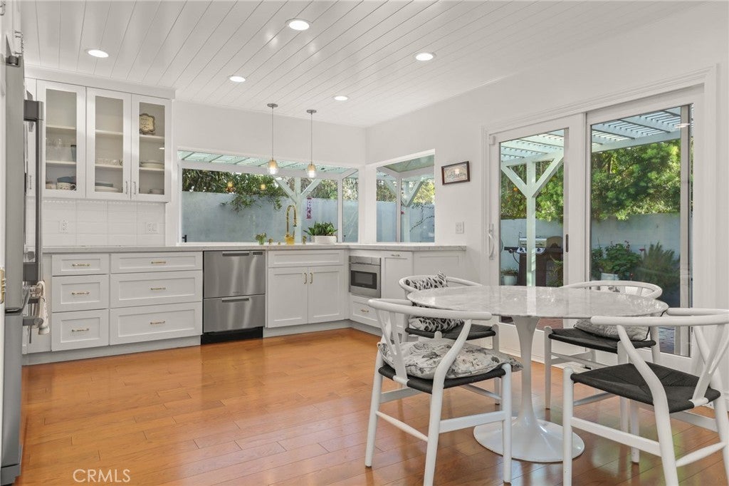 Welcome to this classic 4-bed, 2-bath single-family residence in one of Westlake Village’s most desirable neighborhoods. Situated on a quiet cul-de-sac, this home features an open and inviting floorplan with vaulted ceilings and skylights that flood the living areas with natural light. The spacious living and dining rooms offer dramatic floor-to-vaulted ceiling windows framing views of the backyard, centered around a warm brick fireplace with stone finishes — perfect for everyday living and entertaining. The kitchen flows effortlessly into a generous family room, creating an ideal space for gatherings and relaxed living. With a thoughtful layout that blends comfort and function, this home also includes a 3-car garage and sits on an approximately 7,600+ sq. ft. lot. Enjoy all that Westlake Village has to offer — from award-winning schools and scenic parks to nearby shopping, dining, and easy access to trails for outdoor recreation. This exceptional property offers timeless appeal in a coveted location.