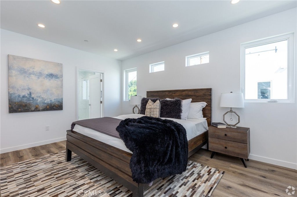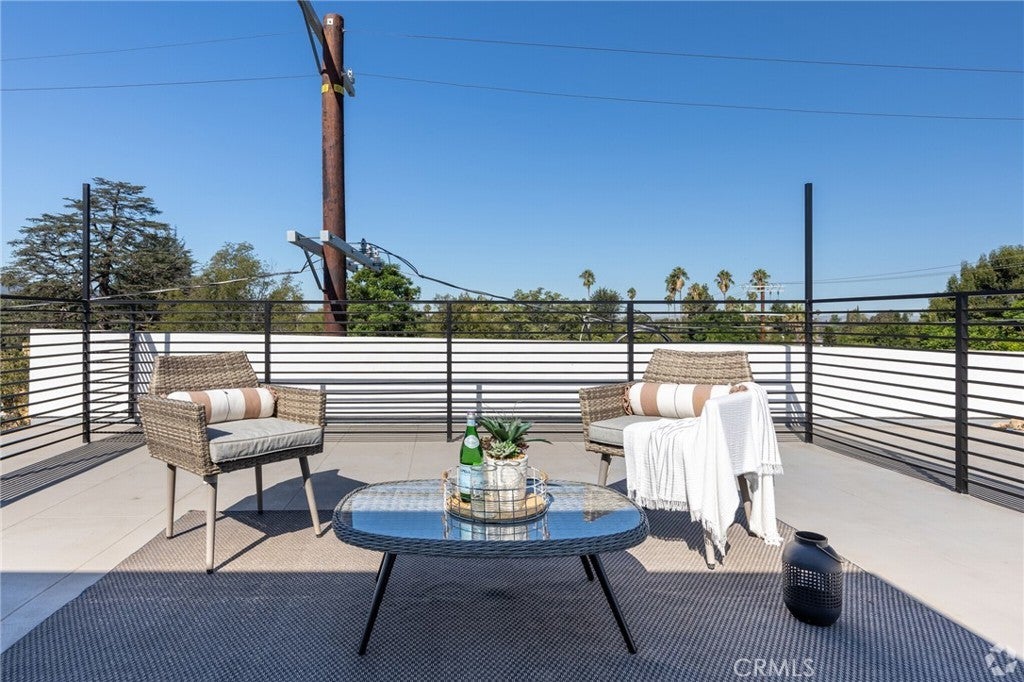 Stunning modern 3-bedroom, 3.5-bath tri-level townhouse offering over 2,550 sqft of living space with a 2-car attached garage. This exceptional unit features a private rooftop deck with breathtaking views. The first level includes the garage and a bedroom with its own en-suite bath. The second level showcases an open-concept living, dining, and kitchen area with European-style cabinetry, quartz countertops, full tile backsplash, and stainless-steel appliances. All remaining bedrooms are on the third level, including the spacious primary suite with a walk-in closet and a luxurious bathroom featuring designer tile, a glass-enclosed shower, and dual vanity. Ideally located near the 101 and 405 freeways, Ventura Blvd, Sherman Oaks Recreation Park, Westfield Fashion Square, dining, shopping, and more. Boutique complex with only 3 total units.