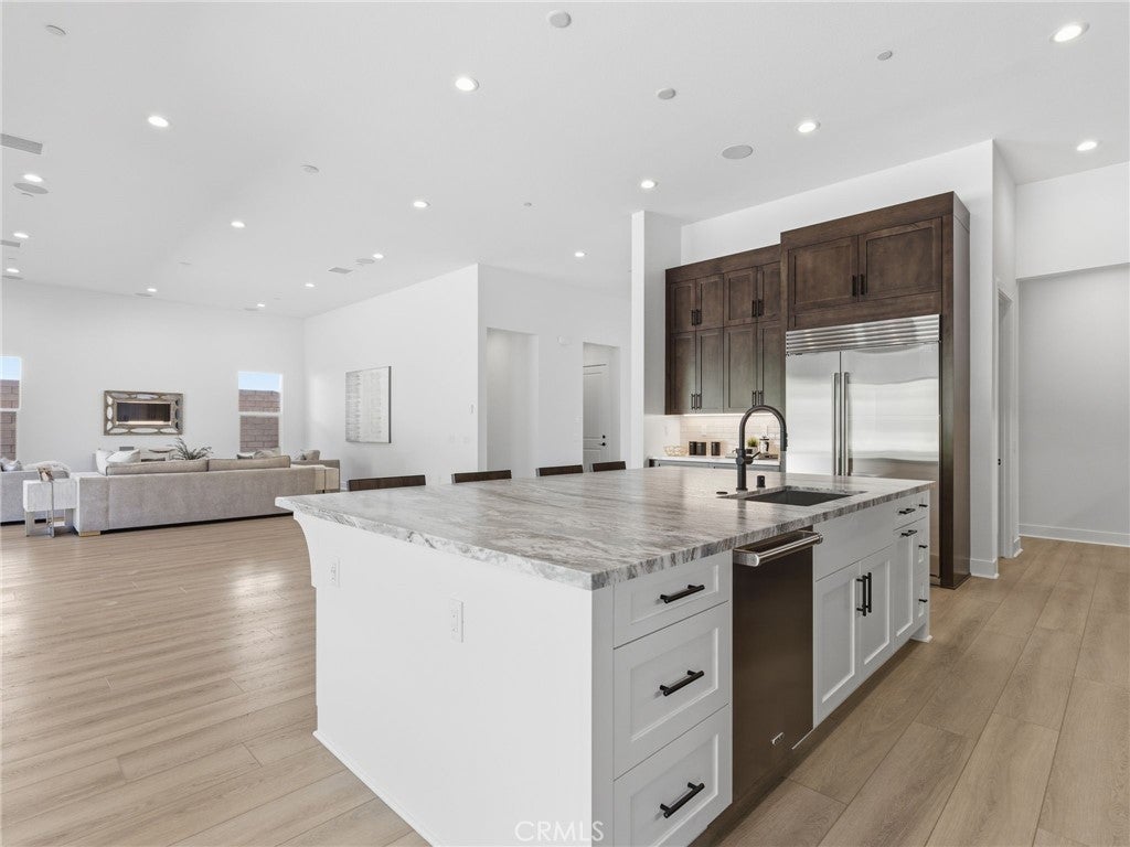 This beautifully upgraded single-story home offers the perfect blend of luxury, privacy, and style. From the moment you step inside, you're greeted by elegant upgraded laminate flooring that flows seamlessly throughout the open-concept living spaces. The heart of the home is a true showstopper—a designer kitchen featuring shaker style cabinets, upgraded quartz countertops, and top-of-the-line Wolf and Sub-Zero appliances. Whether you're hosting a dinner party or enjoying a quiet morning coffee, this kitchen is as functional as it is beautiful. Enjoy indoor-outdoor living with a private backyard featuring a covered patio—perfect for entertaining, or peaceful relaxation. With its premier location, high-end finishes, and single-level convenience, this home is a rare opportunity you don't want to miss. ***Photos on this listing are of another Esen homesite. Not actual home for sale***