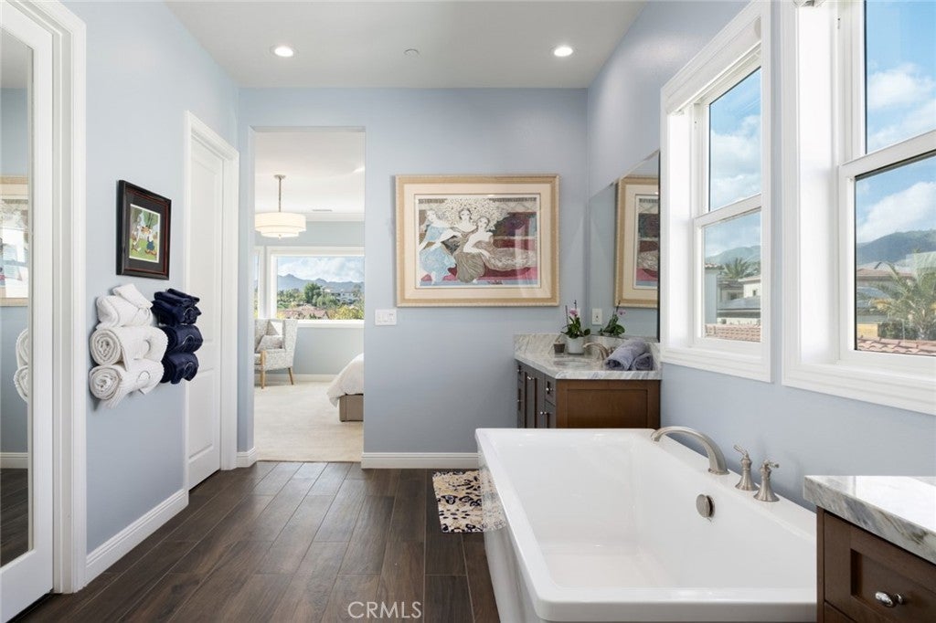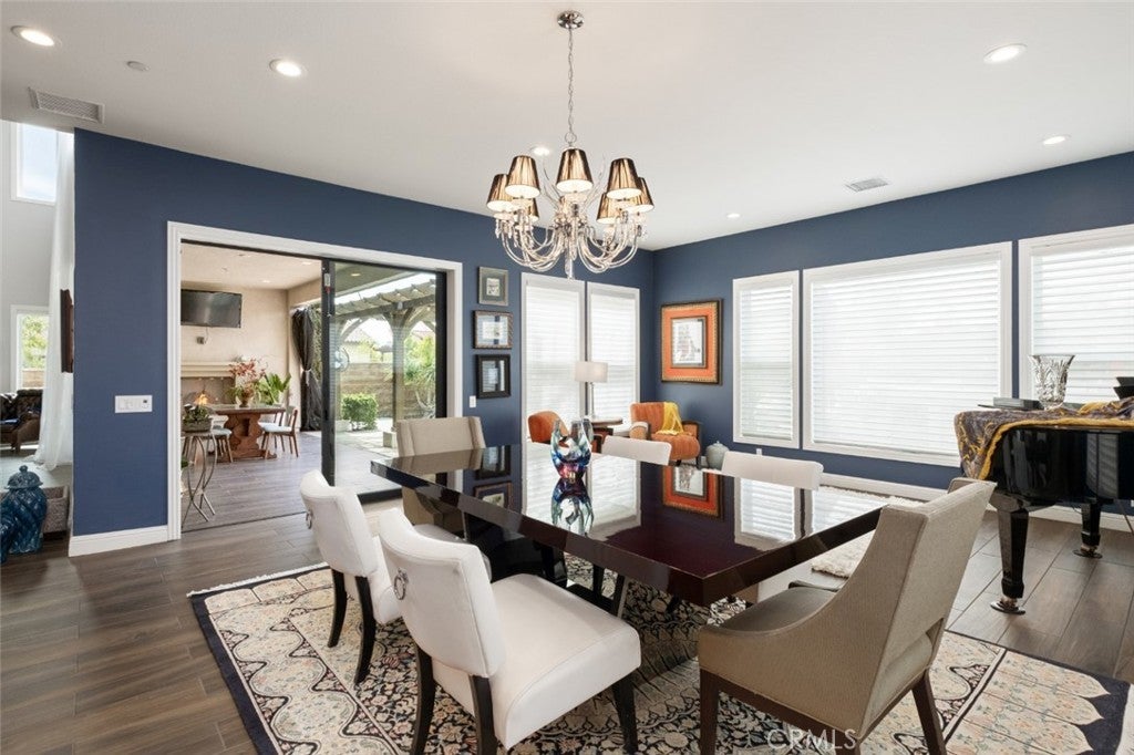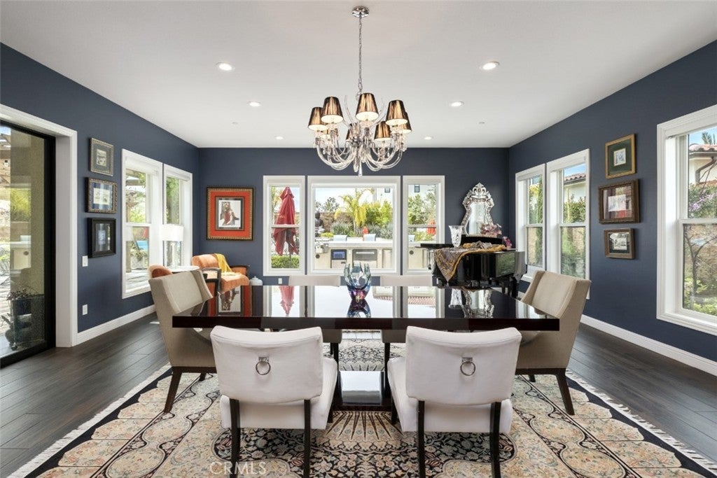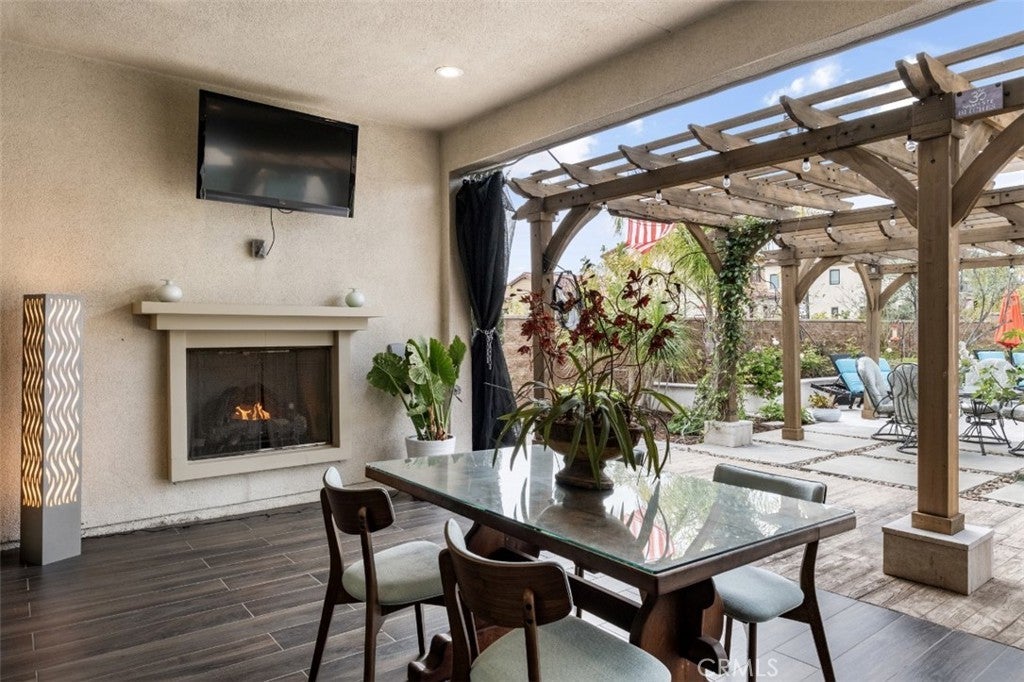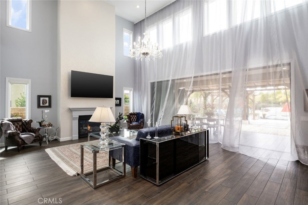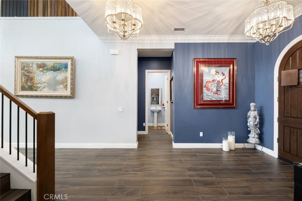 Situated on a prime lot in the prestigious Canyon Oaks community in Chatsworth, this extraordinary estate blends cutting edge design, craftsmanship, and luxury living. Amazing curb appeal with conscientious drought tolerant landscaping, graceful fountain, and aesthetic touches like shutters and Juliet balconies, creating a lovely, Mediterranean feel. Designed to impress, the home offers an open, flowing, floor plan and a contemporary aesthetic complimented by rich, sumptuous touches and modern convenience, enhanced by soaring ceilings, abundant natural light, radiant-heated porcelain floors, automated blinds, and motion-sensor lighting throughout. Move seamlessly between living and entertaining spaces with dramatic two-story living room with clerestory windows and floor-to-ceiling sheers, convenient office space with custom built-ins, formal dining space open to views of the yard, and a spectacular showpiece of a kitchen with enormous central island with breakfast bar seating, dedicated pantry, Sub-Zero and KitchenAid appliances, ceiling-height cabinetry with custom glass tops. A private suite downstairs offers a large walk-in closet and en-suite ¾ bath is perfect for guests or creating a home office space. Upstairs is a large secondary living space that makes a perfect lounge or playroom, a convenient laundry room, three good-sized bedrooms with abundant natural light and a truly luxurious primary suite with full ensuite bath boasting separate shower and soaking tub. Outside, embrace the best of resort style living with a truly spectacular yard, starting with the indoor/outdoor appeal of a California room and including a 7-ft, 800-lb Buddha feature. The backyard sanctuary is an entertainer’s dream, with a fully equipped outdoor kitchen, professional misting system, engineered perimeter drainage, a sunken social pit with dual 5-ft fire features, and a fully electric pool with light and electronic sterilization and dramatic raised fire/water bowls, as well as mature Meyer lemon, tangerine, and lime trees. Additional features include a Lorex security system with one month of recordings, whole-home water filtration, 3-car garage with overhead storage and a premium insulated, wind-rated garage door. The home is well situated near shopping, dining, entertainment, including the Vinyard, and major transportation thoroughfares. Don’t let this opportunity to own an exceptionally appointed luxury estate in one of Chatsworth’s most exclusive enclaves.