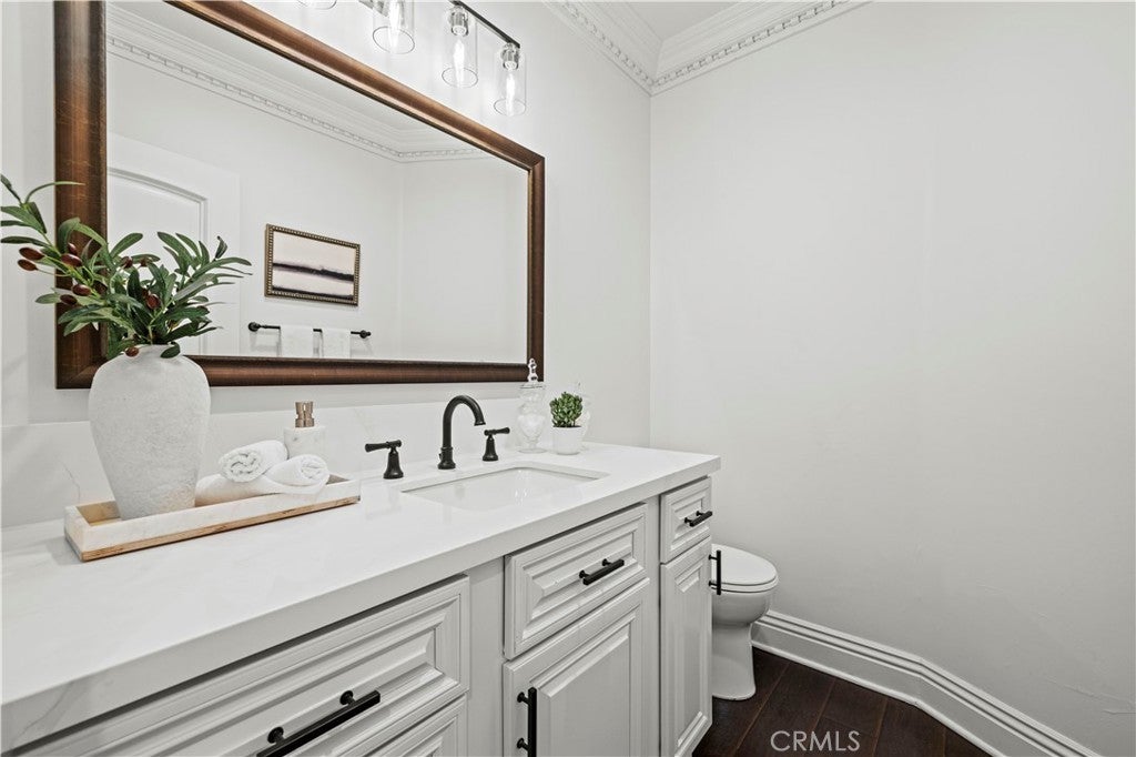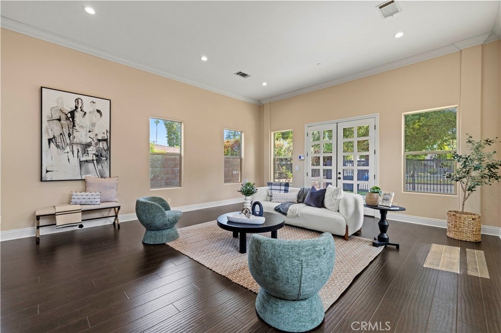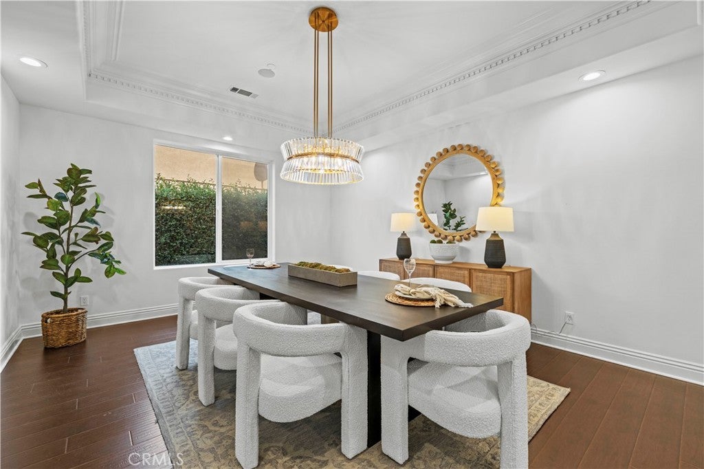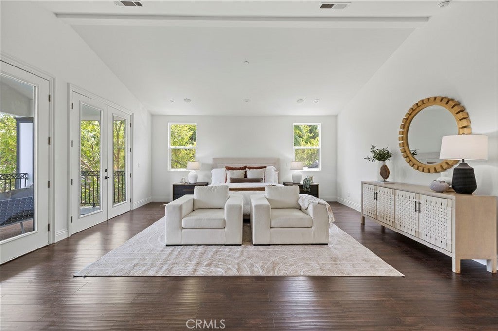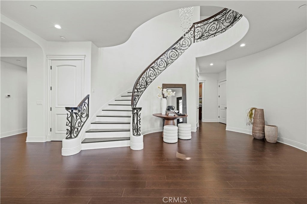Tucked away at the end of a private cul-de-sac, this French Chateau inspired trophy estate offers timeless elegance, grand scale, and a rare detached ADU guest house. A dramatic double height foyer sets the tone, highlighted by a sweeping wraparound staircase and striking custom chandelier. The formal living room impresses with soaring ceilings, a statement fireplace, and towering bay windows that fill the space with natural light. Designed for both everyday living and entertaining, the chefs kitchen features custom cabinetry, a generous center island, high end stainless steel appliances, and an expansive walk in pantry. The kitchen opens seamlessly to the family room with fireplace and French doors, creating exceptional indoor outdoor flow. All five bedrooms are oversized, each offering ensuite bathrooms and walk in closets. The romantic primary suite is a true retreat, complete with a private foyer, sitting room, dual walk in closets, a spa inspired bath with custom shower and soaking tub, and a private balcony. The entertainers backyard provides a resort style setting with pool, spa, covered patio, and low maintenance turf, ideal for gatherings or quiet relaxation. The detached guest house includes a spacious living area, full kitchen and bath, and a large bedroom, perfect for guests, multigenerational living, or additional income potential. An extraordinary custom estate that blends sophistication, comfort, and versatility. This is a must see home.