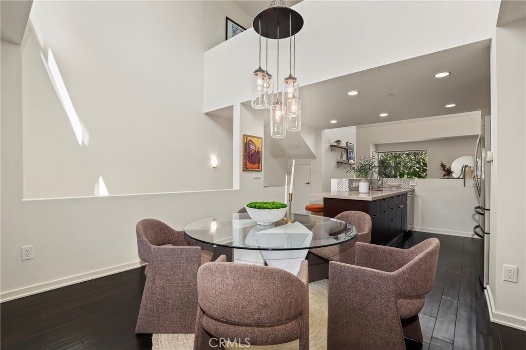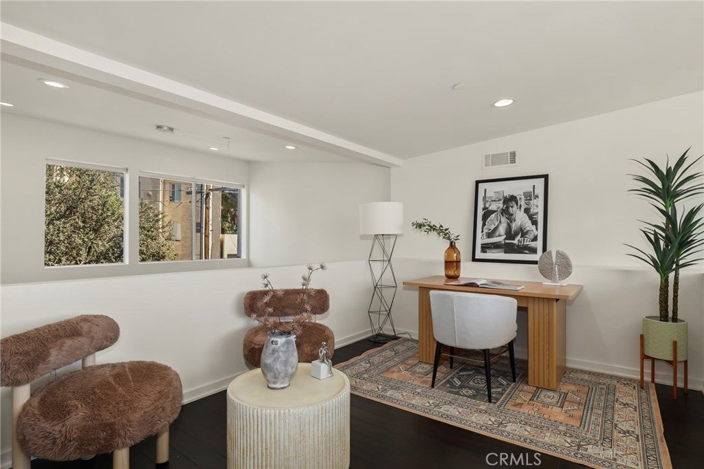 A modern and sophisticated townhome in an intimate 12-unit building designed by award-winning architects Chu + Gooding. This 2-bedroom, 2.5-bath + Loft residence spans multiple levels and features a thoughtful, functional layout enhanced by abundant windows that fill the home with natural light. A lofted mezzanine crowns the residence, offering sweeping sunset views across the Hollywood Hills. The entry level features a tranquil primary suite, a guest bedroom, and convenient in-unit laundry. The second level showcases high ceilings and an open living and dining area that flows to a private balcony, complemented by a sleek kitchen and powder room. Above, the light-filled loft provides an inspiring space for work, art, or a quiet retreat. Ideally located in one of Silver Lake’s most vibrant neighborhoods, just moments from local favorites Courage Bagels, Sqirl, Doto, Budonoki, Bellevue Park, and the Sunset Junction. The home is also conveniently located near major public transit options, including the Metro Red Line and multiple bus lines, offering easy access to Koreatown, Downtown, Hollywood, Universal Studios, UCLA, and USC. The subterranean garage includes two dedicated tandem parking spaces, guest parking, and an oversized private storage unit.