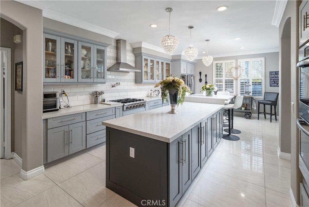 - AppliancesSixBurnerStove, Double Oven, Dishwasher, Gas Oven, Microwave, Refrigerator, Range Hood