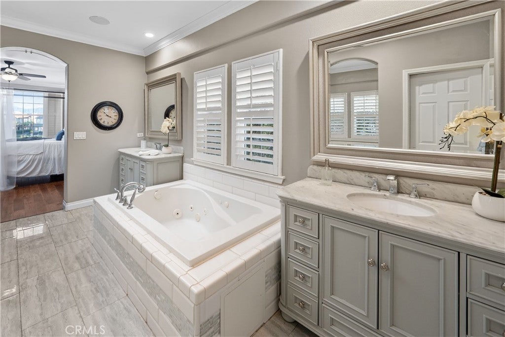 Spectacular Lake View Home on a Cul-De-Sac! One of the best locations in Bridgeport! Feels like you are in Cape Cod. As you enter this Exquisite Entertainer’s Home you are in Awe with the Designer’s Touch throughout. Truly One of A Kind & should be Featured in a High-end Coastal Luxury Magazine! Stunning Upgraded Model Perfect Home Boasts 3 Lg Bedrooms, Exquisite Primary Suite w/Fireplace & Breathtaking Lake Views, 4 Bathrooms (Remodeled Primary, Powder Room & Ensuite Bathroom), Lg Loft (could be 4th bedroom) w/Shimmering Lake Views, Exquisite Remodeled Gourmet Kitchen, Huge Quartz Island w/Sitting Area, Nook Area, Luxurious Quartz Counter Tops & Subway Tile Backsplash, Stainless-Steel Appliances, Cabinets w/Glass Doors & Counter Top lighting, Lg Wine Refrigerator & 6 Burner Range Top w/Pot Filler. Perfect for the Meticulous Chef! Large Great Room w/Crown Moulding, Plantation Shutters, Sophisticated Fireplace overlooking the Shimmering Lake. Fabulous Formal Dining Room w/Crystal Chandelier & Lake Views, French Doors Leading to the Large Courtyard w/Custom Built-In BBQ & Beautiful Water Feature. Perfect for Entertaining! As you Meander upstairs, you will notice the Architectural Design w/upgrades including Wood Flooring, Plantation Shutters, Crown Moulding, Recessed Lighting, Raised Baseboards, and Professionally Painted Inside & Outside. Magnificent Primary Suite w/Custom Built-ins & Fireplace with Breathtaking Lake Views. Feels like you are on vacation. Lavish Remodeled Primary Bathroom w/Granite Counter Tops, Framed Mirrors, Large Walk-in Shower, Separate Jetted Tub, & Two Large Walk-in Closets. Expansive Secondary Bedrooms w/Luxurious En-suites (one remodeled). Huge Loft could be a 4th Bedroom, Game Room or Office with Picturesque Lake Views. Entertainer’s Yard on the Lake with Superb Views! Perfect for Family Gatherings. Professionally Landscaped & Hardscaped, Outdoor Lighting, Private location with only one neighbor. Features include Remodeled kitchen, Upgraded Bathrooms, Wood Flooring, Plantation Shutters, Crown Moulding, Recessed Lighting, Surround Sound Speakers, Raised Baseboards, Elegant Crystal Chandelier, Laundry Room, and so much more. No Expense Left Unturned at this home! Resort Style Amenities include Clubhouse, Pools, Spa, BBQs, Boating Facilities, & Huge Custom Fireplace. Feels like you are at a Resort!Close to Award-winning Bridgeport Elementary School, Restaurants, Shopping & Easy Freeway Access. No Mello Roos.