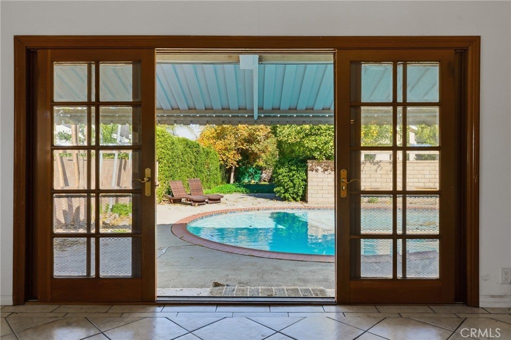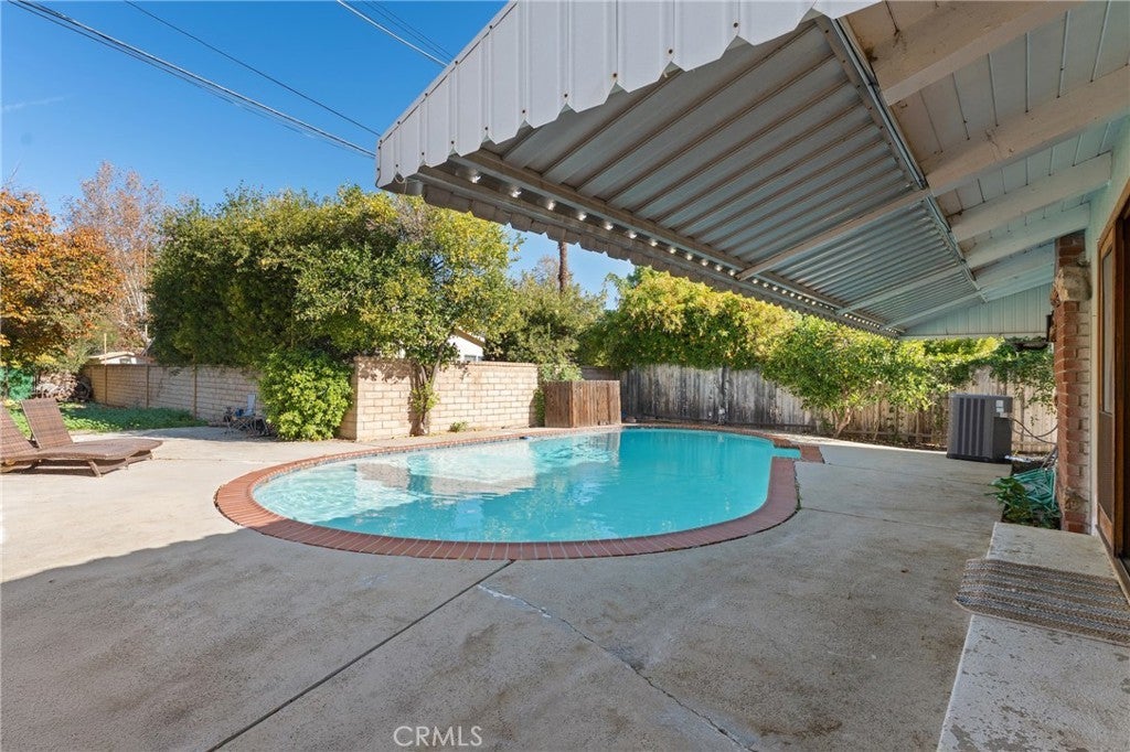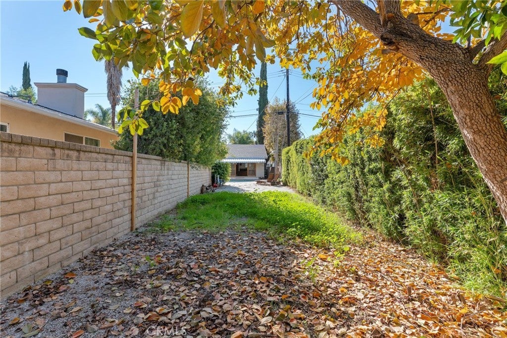 Fantastic opportunity to own a single story pool home situated on an extremely rare street-to-street lot! A large portion of the property extends over 200 feet and connects to the street behind (Miranda), presenting amazing investment potential to build an ADU or alternatively use for extra backyard play space for a sports court/outdoor kitchen/etc or use for oversized parking for RVs/boats - the possibilities are endless. The classic ranch home is cladded with original stone & wood siding and sits back from the street with long driveway lined by towering mature Palm trees that leads to the attached 2-car garage with direct access. Step inside to find a completely open floor plan filled with natural light. The oversized central living room boasts high vaulted wood beamed ceiling, stone fireplace, and sliding glass doors that open to the backyard. The open kitchen features granite counters and stainless appliances. A separate dining area connects the kitchen and living room and features real hardwood flooring. The three bedrooms are located on their own private wing of the home. The primary bedroom features a spacious closet and a private en-suite bathroom with walk-in shower. The two secondary bedrooms have closets with built-ins and share a large hall bathroom with dual sinks and bath tub with shower. The backyard is highlighted by a resurfaced swimming pool and features a sweeping covered patio for outdoor dining and an expansive portion of land with fruit trees that provides a blank canvas to customize to your liking. Additional system upgrades per seller include new HVAC system (2025), newer electrical panel (2023), copper plumbing (2006), and dual paned windows throughout. Adjacent to Westfield Mall/Village, Calabasas Commons, Warner Center with the new Rams Village in development, & zoned for award-winning El Camino & Hale charter schools.