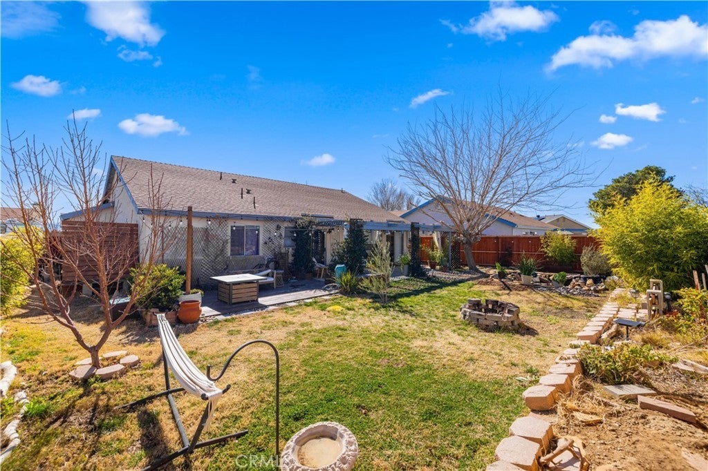 Welcome to this 4-bedroom, 2-bath home in Rosamond, now positioned at a competitive price to reflect today’s market. This well-maintained residence features vaulted ceilings in the living room and kitchen, creating an open, airy layout that is enhanced by warm wood-tone flooring throughout the main living areas. Solar panels are installed, helping to reduce energy costs for buyers who value practicality. The spacious backyard is designed for everyday life, with a wooden deck and a peaceful pond—ideal for relaxing evenings, casual weekend gatherings, or simply enjoying the outdoors. The home is conveniently located near schools and everyday conveniences.
