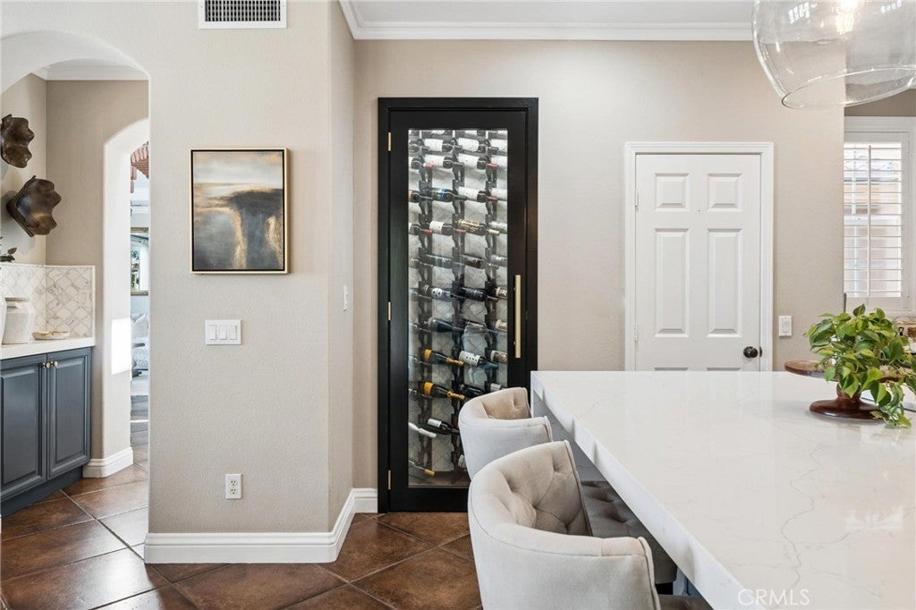 - Interior FeaturesBreakfast Bar, Built-in Features, Breakfast Area, Ceiling Fan(s), Separate/Formal Dining Room, High Ceilings, Open Floorplan, Pantry, Recessed Lighting, Bedroom on Main Level, Loft, Main Level Primary, Walk-In Closet(s), Bar, Crown Molding, Storage, Wine Cellar