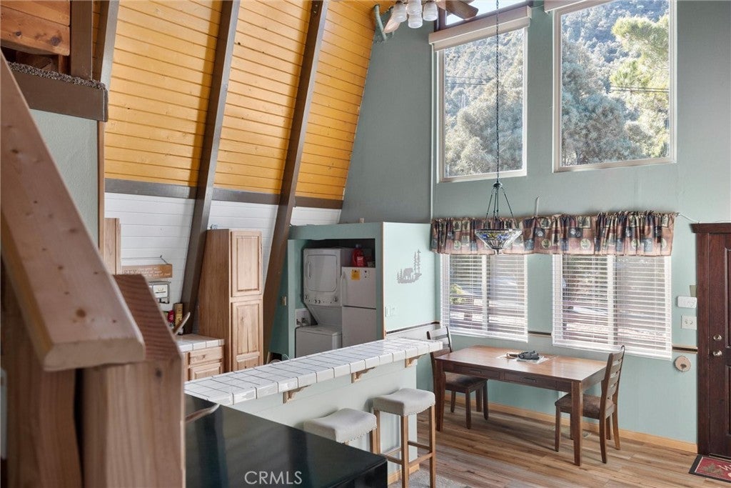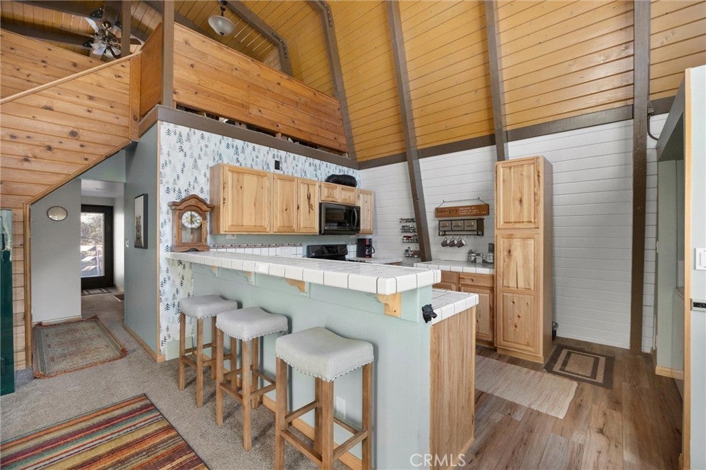 • Interior FeaturesBeamed Ceilings, Breakfast Bar, Built-in Features, Ceiling Fan(s), Eat-in Kitchen, Furnished, High Ceilings, Open Floorplan, Storage, Wood Product Walls, All Bedrooms Down, Bedroom on Main Level, Loft, Main Level Primary