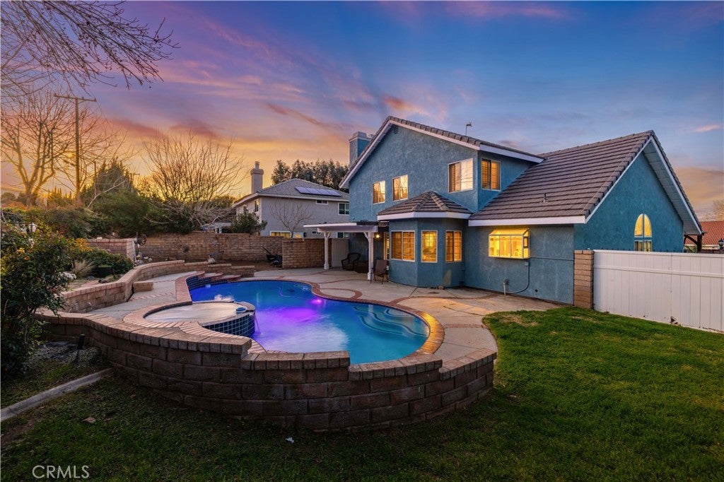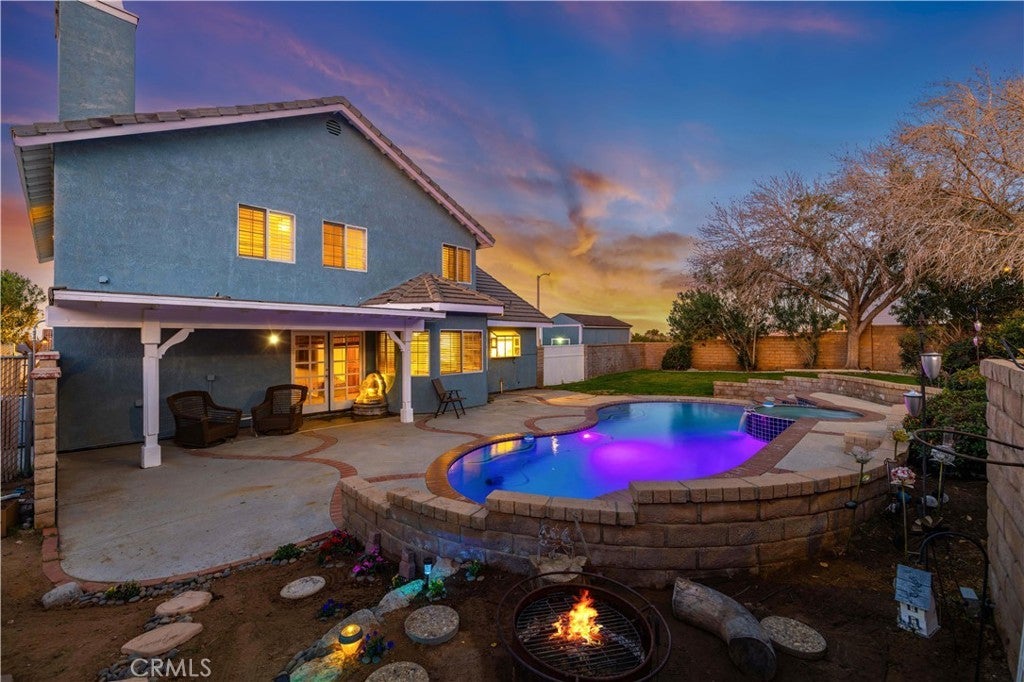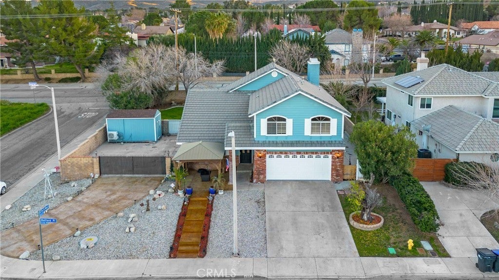 Lovely Pool Home in the Highly Sought-After Quartz Hill School District! Stamped concrete steps lead to a charming covered front porch with beautiful city light views. Inside, you’ll find a thoughtfully updated interior featuring a remodeled kitchen with quartz countertops, refinished hardwood cabinetry, and new SmartPro luxury vinyl plank flooring. The second floor offers brand-new carpeting, while fresh interior and exterior paint give the home a crisp, modern feel. The spacious family room includes a cozy wood-burning fireplace, and the oversized primary suite offers plenty of room to unwind and also has a Lovely wood burning Fireplace. The large primary bath features a spa tub and a walk-in closet. With over 2,600 square feet, every room in this home feels open and inviting. Additional highlights include new epoxy garage floors, a large paved RV/boat parking area with concrete driveway, and an insulated 8’x16’ manufactured unit complete with electricity, A/C, and heat — perfect for a workspace, studio, or storage. Step outside to a beautifully maintained grassy yard with a sparkling pool and spa — ideal for entertaining! Turn Key Move-in Ready Home!