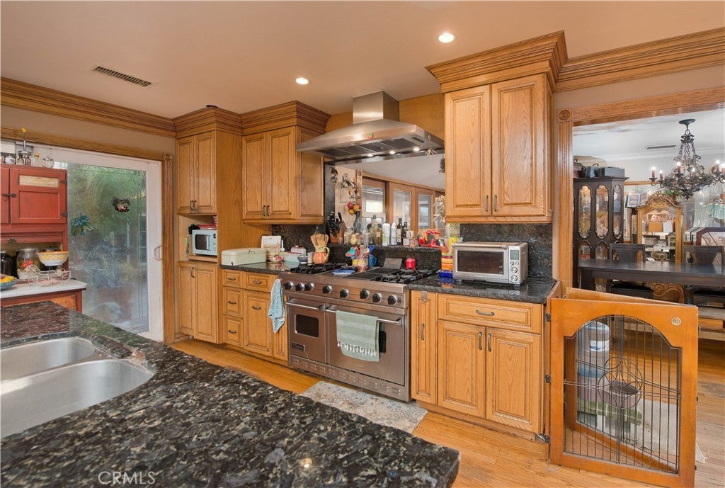 Welcome to this exceptional gated single-story estate offering versatility, privacy, and incredible income or multi-generational living potential. This unique property features 5 bedrooms and 5 bathrooms total, including a detached garage converted into a 1-bedroom guest house and an attached in-law ensuite within the main residence complete with kitchenette, private bath, private patio, separate entrance, and its own gated driveway. The main house offers 4 bedrooms and 3 bathrooms plus the attached ensuite (1+1), highlighted by smooth ceilings, a chef’s kitchen with a Viking range, copper plumbing, dual HVAC systems, double-pane windows, and two fireplaces. Enjoy expansive gated parking with room for 10+ vehicles or RV parking with plug-in and dump access. Two separate gated driveways provide added privacy and convenience. The property also features a large private front yard and spacious backyard ready for your vision — with room to add an ADU. Additional amenities includes a chicken coop, she-shed, storage areas, and mature privacy trees. Ideal for extended family living, rental income, or future expansion opportunities. Must see in person, lots of potential with such a large private lot, this will go quick!