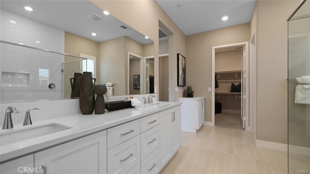A Stunning, Must-See 3 Bedroom plus Office, 4 Baths Model Home! This beautifully upgraded residence showcases exceptional craftsmanship and designer finishes from top to bottom. Featuring three spacious bedrooms, each with its own en-suite bathroom, walk-in closet, plus an additional guest bath, this home offers both comfort and privacy. Enjoy a custom office with built-in cabinetry, a chef-inspired upgraded kitchen with premium appliances including granite countertops, self closing cabinets and drawers, and a separate laundry room for added convenience. The garage is enhanced with custom cabinetry, while professionally designed landscaping graces both the front and backyard. Additional highlights include paid-off solar, tankless waterheater, extended sliding glass doors for seamless indoor-outdoor living, upgraded flooring and baseboards, and countless thoughtful upgrades throughout. Tons of Acitivities from Swimming pool, spa, gym, tennis, pickleball, several putting greens, walking trails, dog park, etc. Tons of Community events from Tai Chi, a Chocolate Birthday Social, Craft & Chat, walking group, Game Night, and a wine stroll, beer tasting, pot luck dinners, Plus so much more! This exceptional home is truly move-in ready—don’t miss your opportunity. It won’t last!