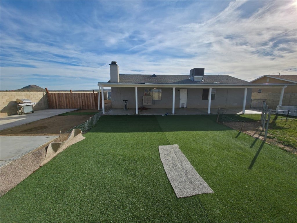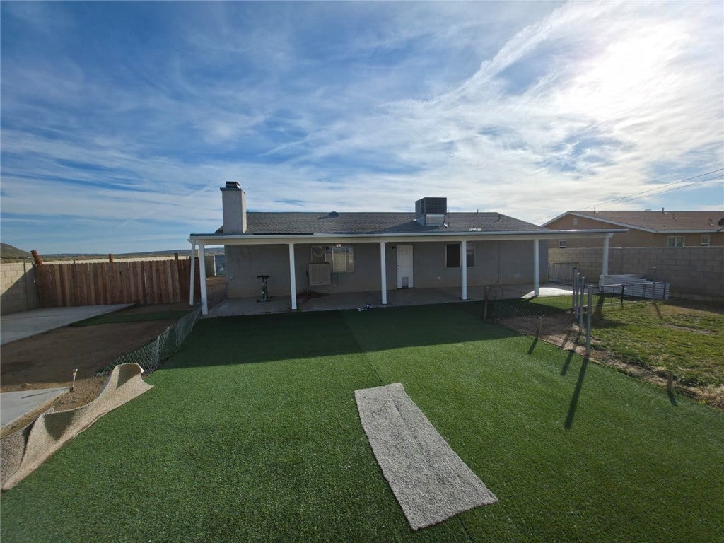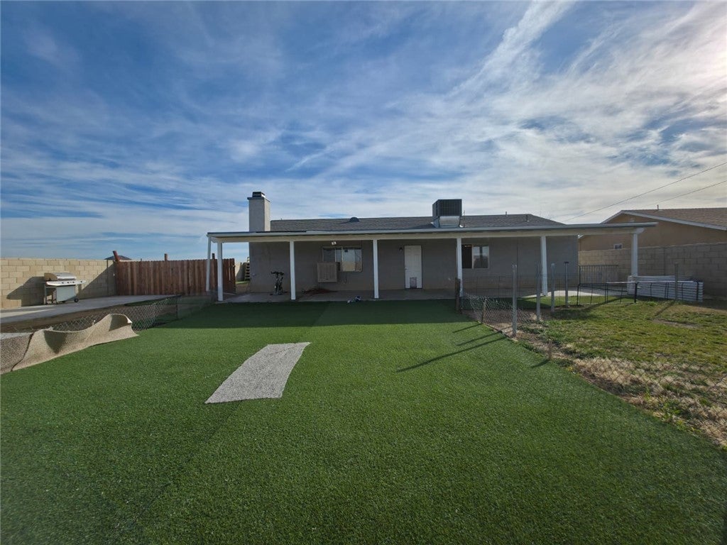 This single-story home offers 3 bedrooms, 2 bathrooms, and 1,367 sa ft of living space on a 10,018 sq ft lot in a quiet California City neighborhood. Built in 1991, the property features an attached 2-car garage and a functional floor plan with freshly painted interiors that create a bright and welcoming atmosphere. The living room includes wood-burning fireplace, and the home provides central heating and air conditioning for year-round comfort. The layout flows easily between the living, dining, and kitchen areas, offering a comfortable setup for everyday living. The spacious lot is fully enclosed with block fencing and an iron gate, offering privacy, security, and room to personalize outdoor spaces. A covered patio provides a great area for relaxing or entertaining. Located in an established residential neighborhood with convenient access to local amenities, schools, and easy access to freeways, this home presents a great opportunity to own a home.
