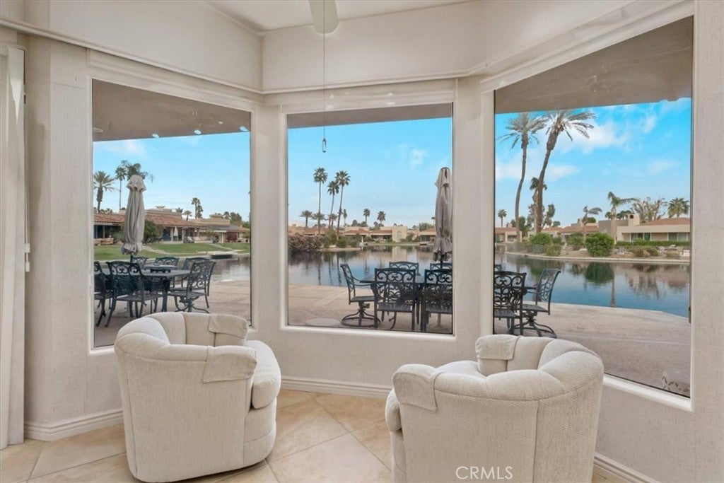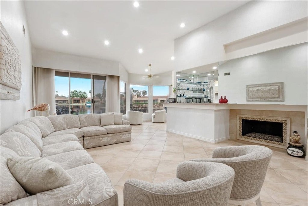 Experience luxury lakefront living in this beautifully maintained one story, 3-bedroom, 3-bath, 2,625 sq ft residence located in the prestigious guard-gated Lake Mirage community. This highly desirable floor plan offers abundant natural light, high ceilings, an open-concept design, and seamless indoor-outdoor flow. The spacious step-down living room features a cozy fireplace, wet bar, and an inviting layout perfect for entertaining. Each bedroom offers direct access to its own bathroom, including two primary suites with oversized spa-inspired baths. Primary bathrooms include soaking tubs, separate showers, double sinks, and private toilet areas for added comfort and privacy. Take in breathtaking lake and southern mountain views from the expansive waterfront patio and your private dock. Enjoy resort-style amenities including 11 pools/spas, 10 tennis courts, 4 pickleball courts, clubhouse, fitness center, plus boating, kayaking, and an attached 2-car garage with direct access - minutes to shopping, dining, and Palm Springs Airport.