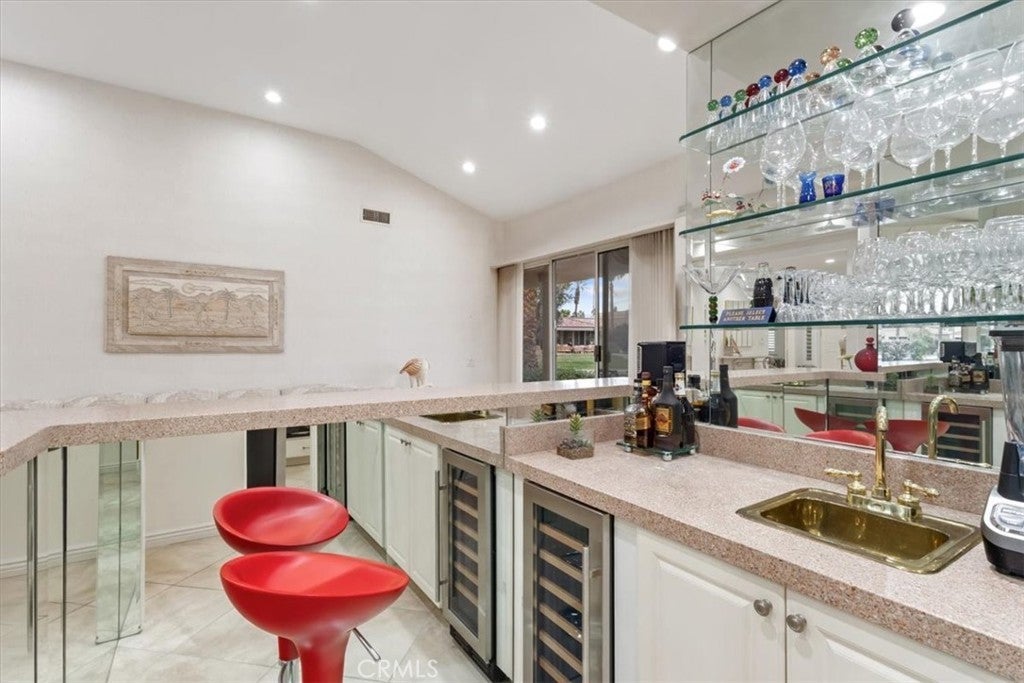 - Interior FeaturesWet Bar, Breakfast Bar, Built-in Features, Ceiling Fan(s), Cathedral Ceiling(s), Separate/Formal Dining Room, Eat-in Kitchen, High Ceilings, Open Floorplan, Recessed Lighting, All Bedrooms Down, Bedroom on Main Level, Entrance Foyer, Main Level Primary, Walk-In Closet(s), Bar, Coffered Ceiling(s), Tile Counters