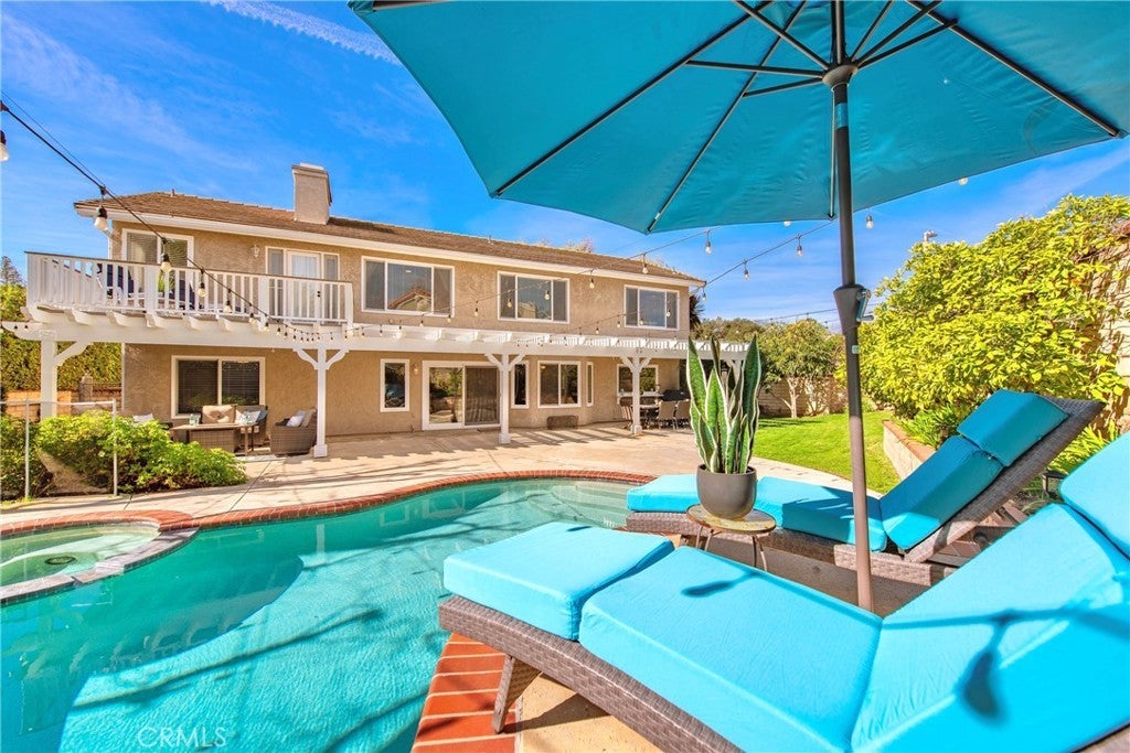 *Ask us how we can get below market financing for you!* Imagine a morning defined by leisure rather than a rush, where your day begins with a peaceful stroll along Medea Creek. Welcome to the coveted flats of Morrison Estates, a neighborhood designed for connection and convenience. Perfectly positioned on a desirable corner lot along the gorgeous Shadycreek greenbelt, this home offers an idyllic setting for any stage of life. Whether you appreciate the short walk to award-winning schools or simply desire a community where neighbors wave hello and the rhythm of life is relaxed, this is the perfect place to put down roots. When October arrives, you'll especially love the festive magic of Halloween, where the entire community comes together to create a memorable occasion for all ages. Inside, this 5-bedroom, 3-bathroom sanctuary balances a luxurious sense of style with the ease of daily life, having undergone a series of tasteful improvements. Every bathroom has been thoughtfully updated, while beneath the stairs, a temperature-controlled wine cellar waits for the perfect bottle. Nearby, a bar area glows with mood lighting, ready for the soft hum of a dinner party and the perfect evening ambiance. The spacious upstairs primary suite is a retreat unto itself, where a private balcony catches the breeze and a flickering fireplace warms a bonus space meant for morning coffee or a quiet seating area. A well-appointed downstairs bedroom offers a quiet corner for visiting guests or a private home office for remote work. Finally, the back door slider opens to your own private yard of avocado, grapefruit, and lemon trees. The air smells of citrus blossoms, and the pool, secured by a children’s gate, anchors long afternoons of splashing in the sun while the jacuzzi promises endless relaxation and fun beneath the stars. Just beyond the quiet of the greenbelt, the convenience of the neighborhood unfolds with a variety of local shops, restaurants, and grocery stores only minutes away. Whether you're running a quick errand or enjoying a sunset walk along the Medea Creek trail, everything you need is right within reach.